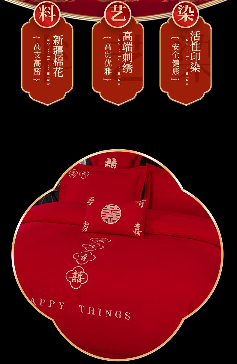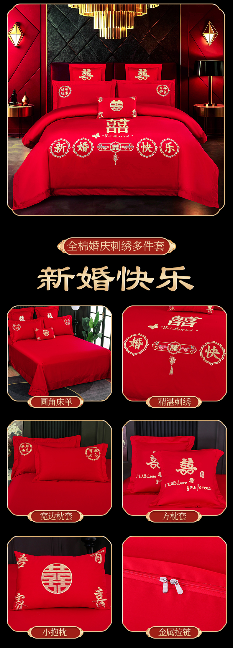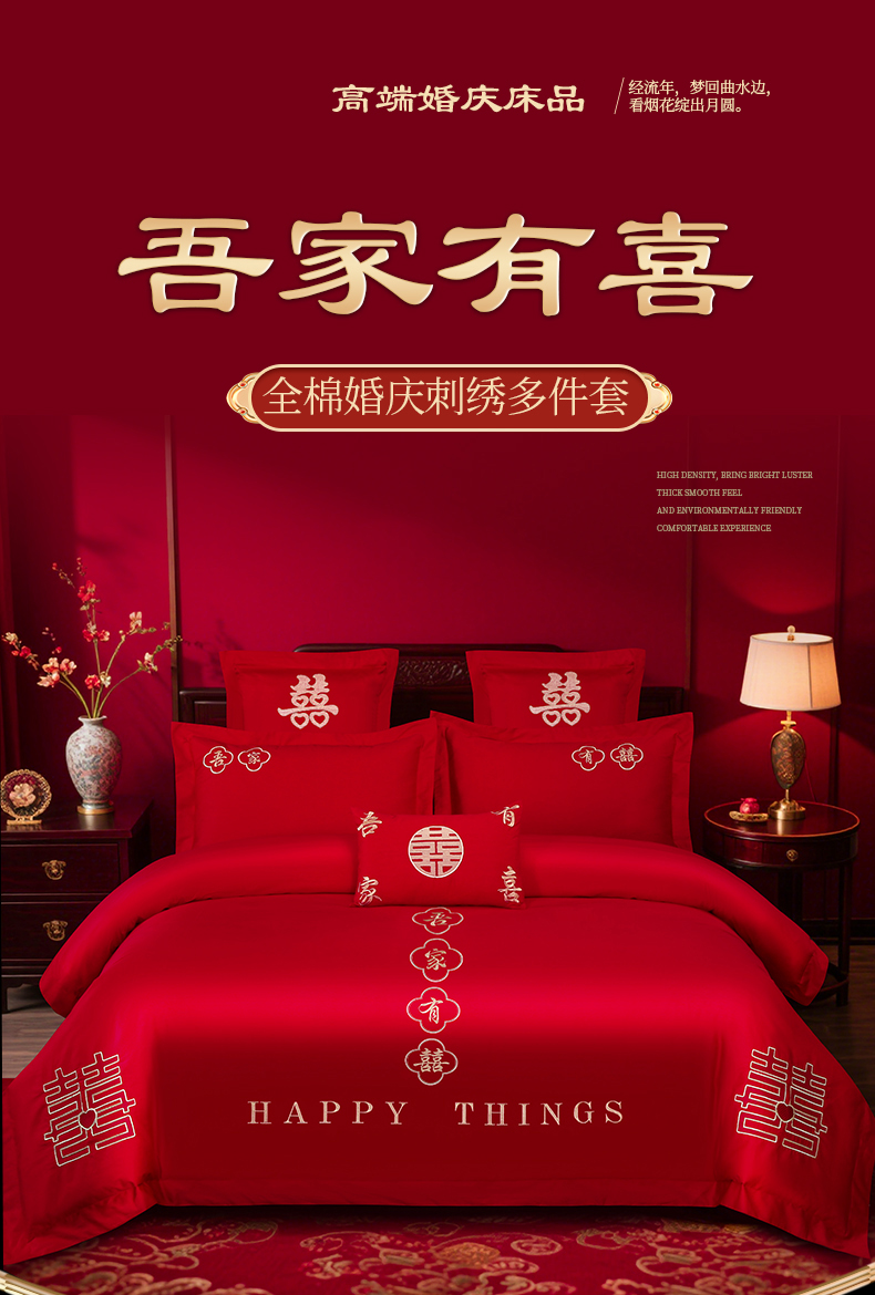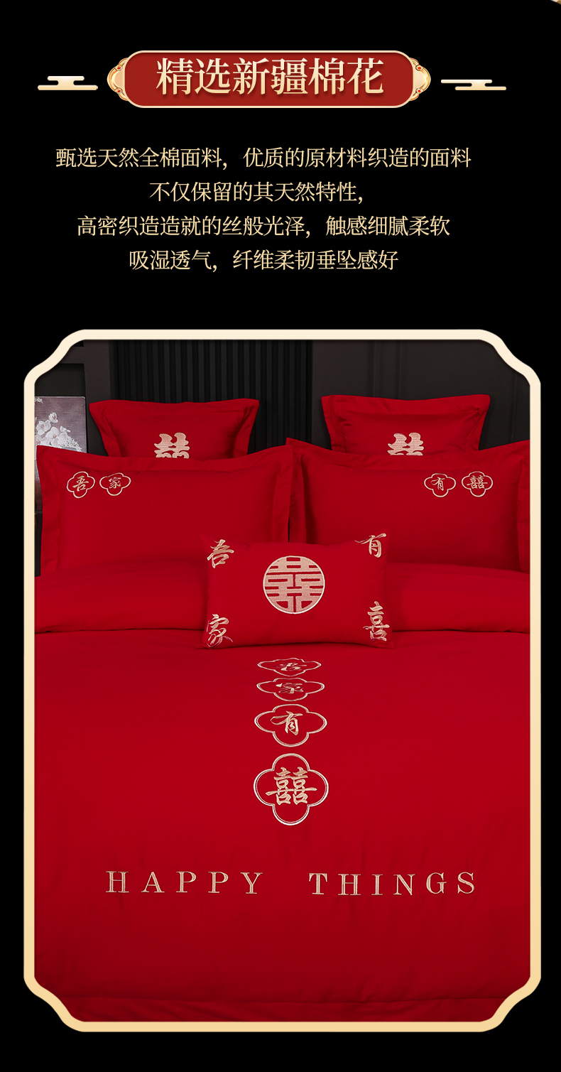 当前位置: 91家纺网 > 商品网购 > 床品套件 > 四件套 > 婚庆四件套 > 浩情国际婚庆供货中心 2026新款100%全棉长绒棉纯棉婚庆四件套结婚刺绣六件套多件套长期供货 吾家有喜
