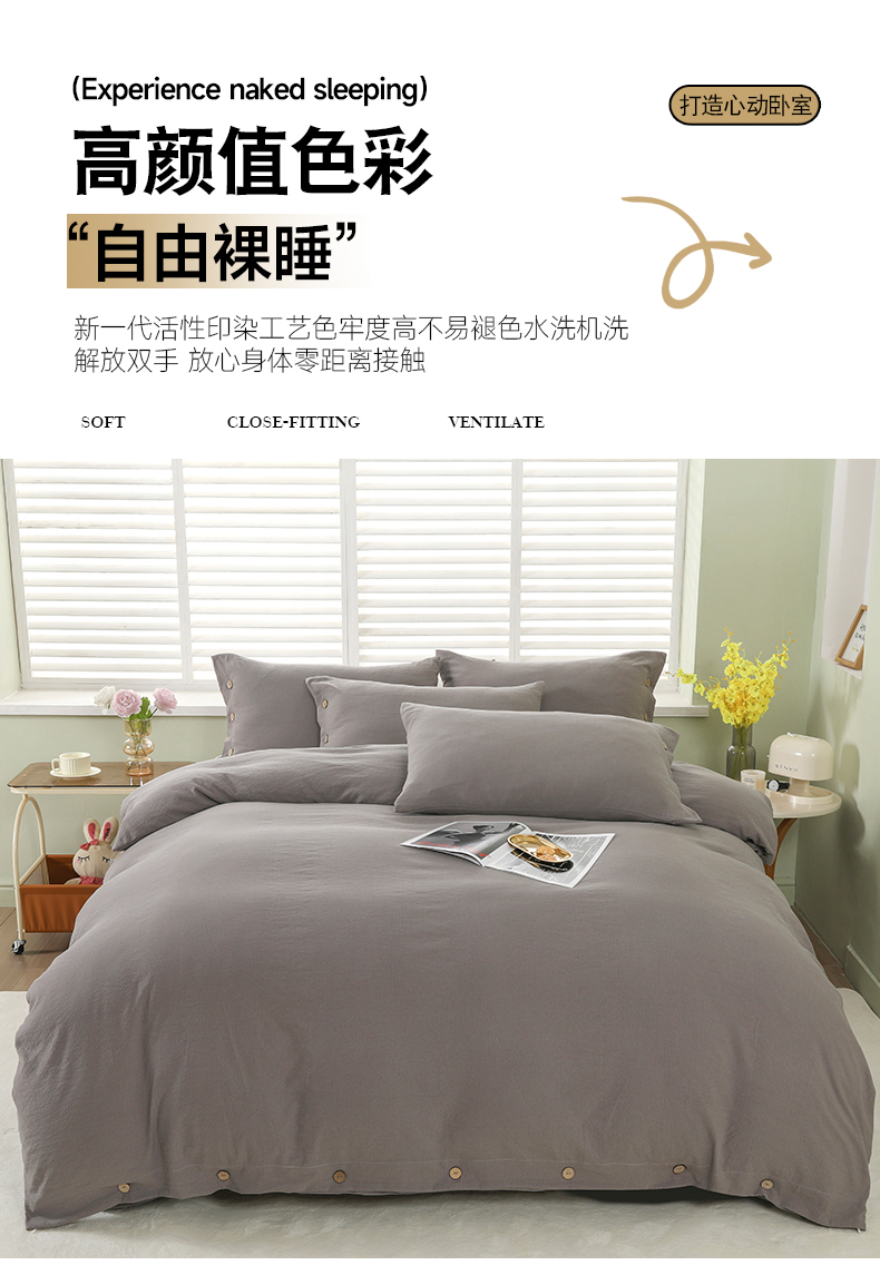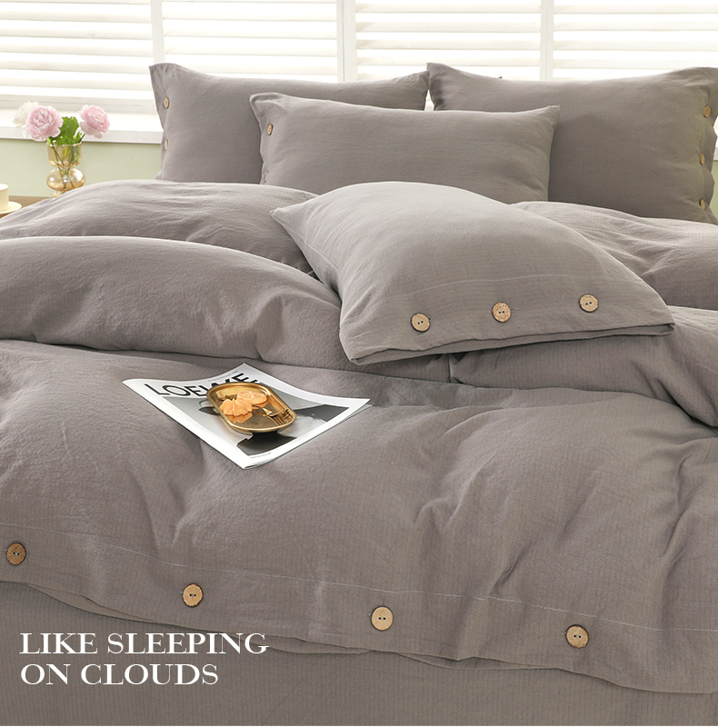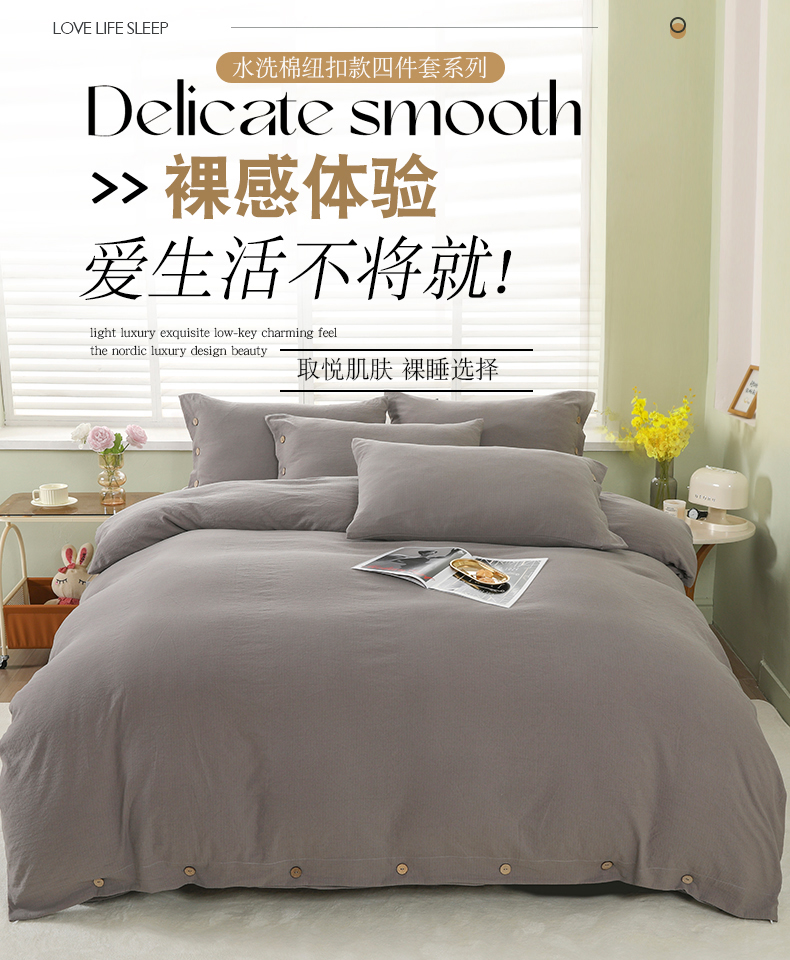 博婷 2026新款水洗棉麻皱皱纱纽扣工艺款四件套 灰色