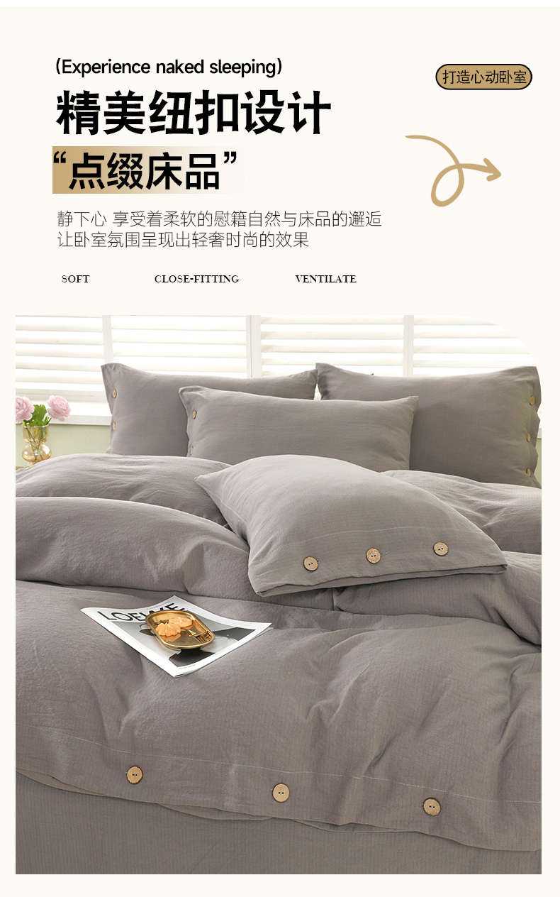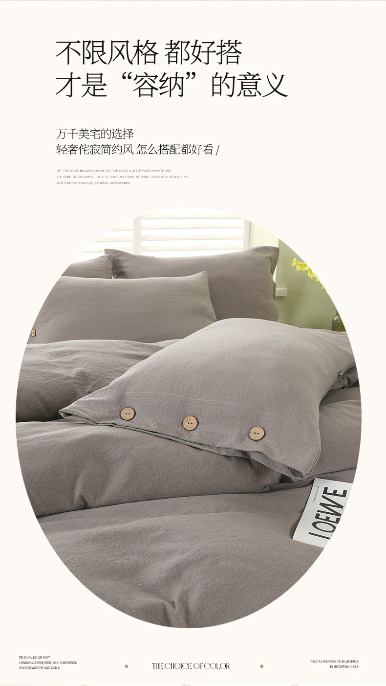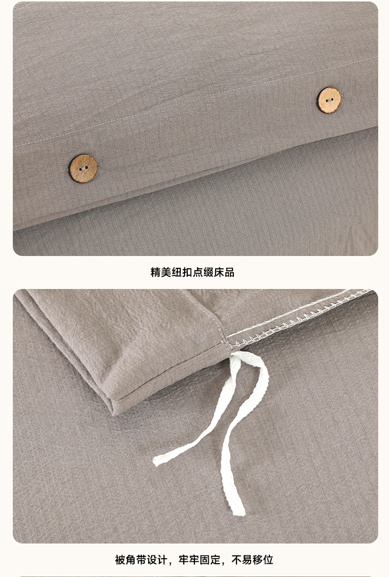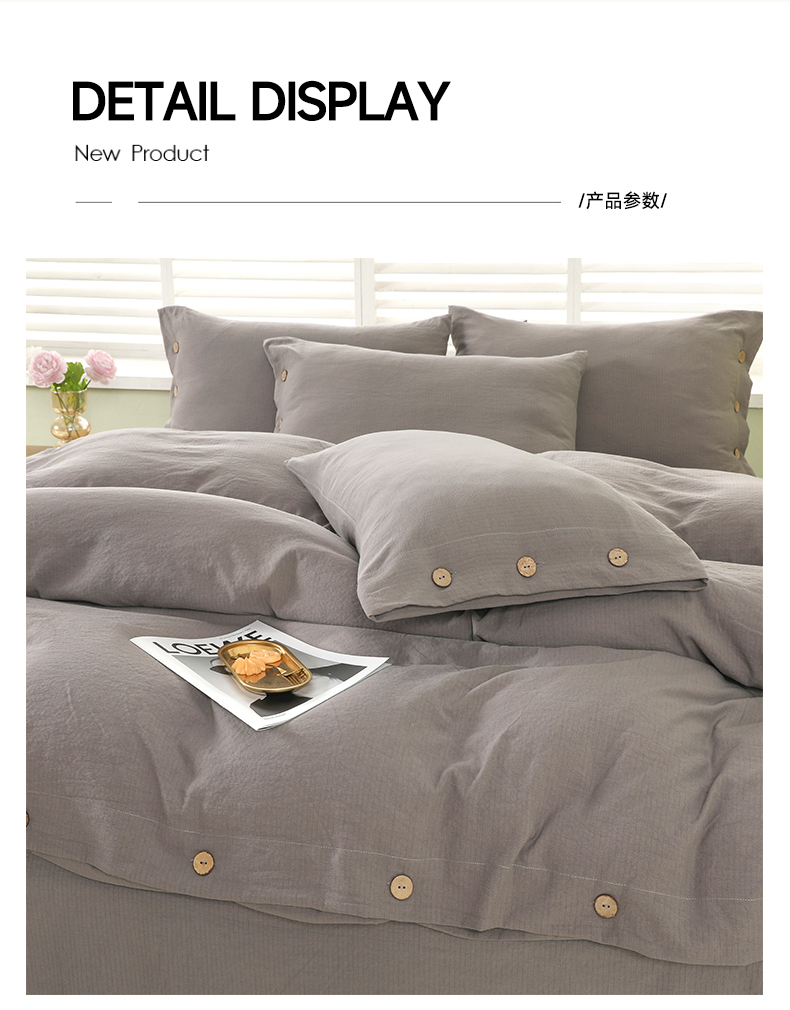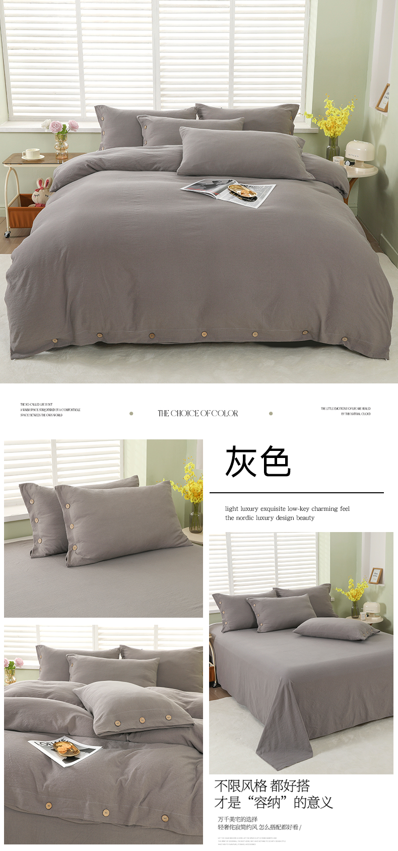 商品名称:博婷 2026新款水洗棉麻皱皱纱纽扣工艺款四件套 灰色