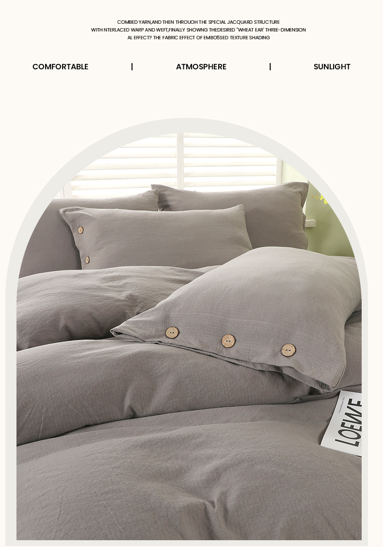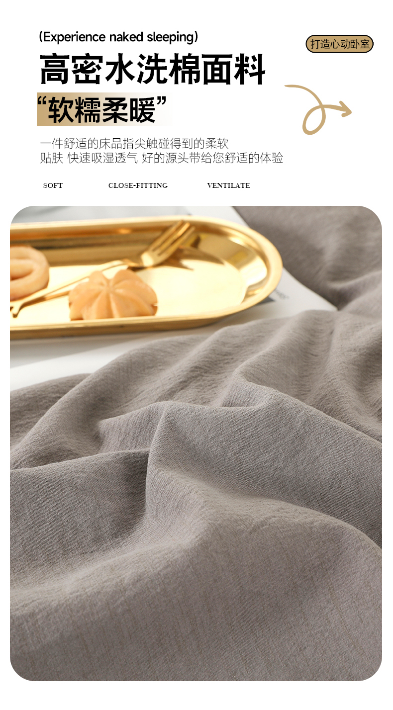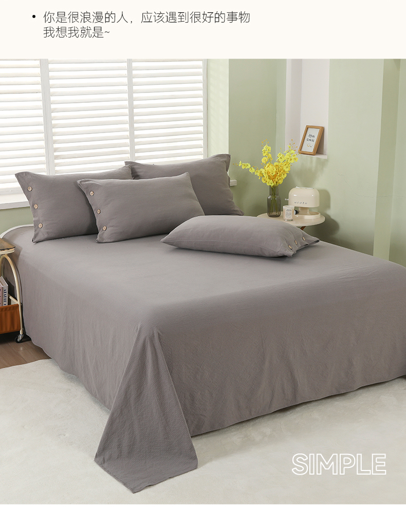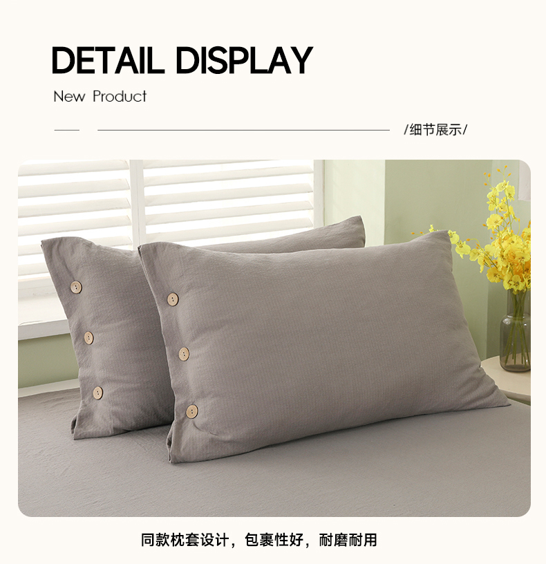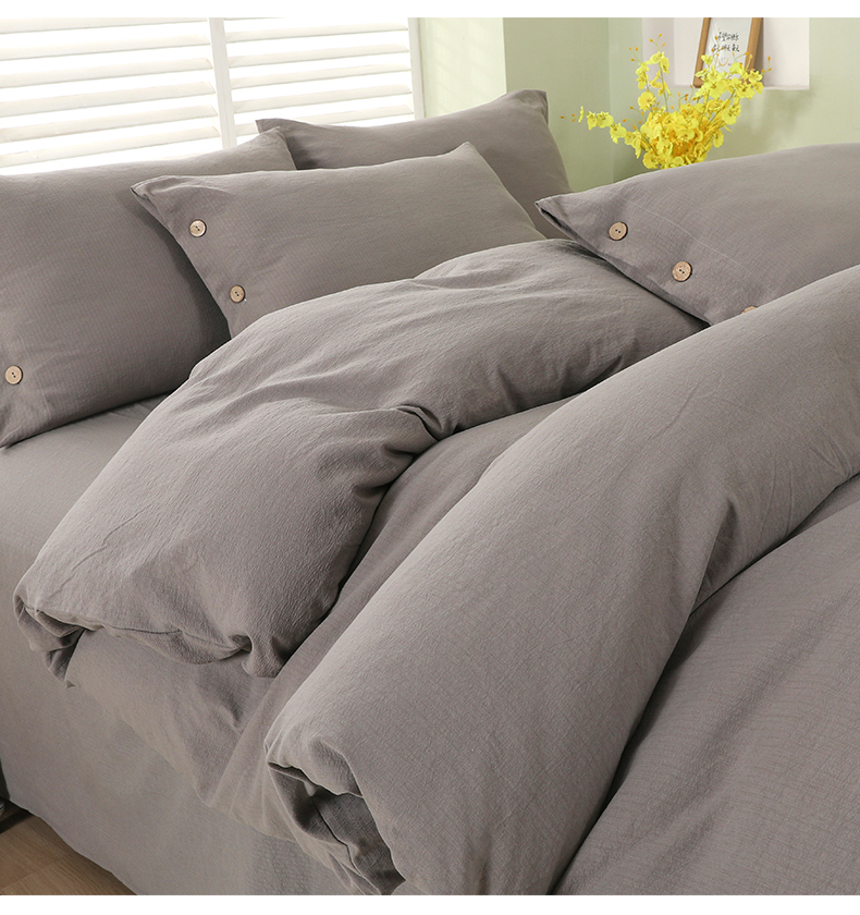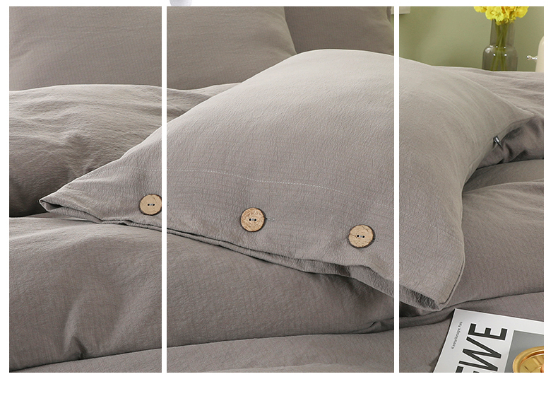 商品名称:博婷 2026新款水洗棉麻皱皱纱纽扣工艺款四件套 灰色