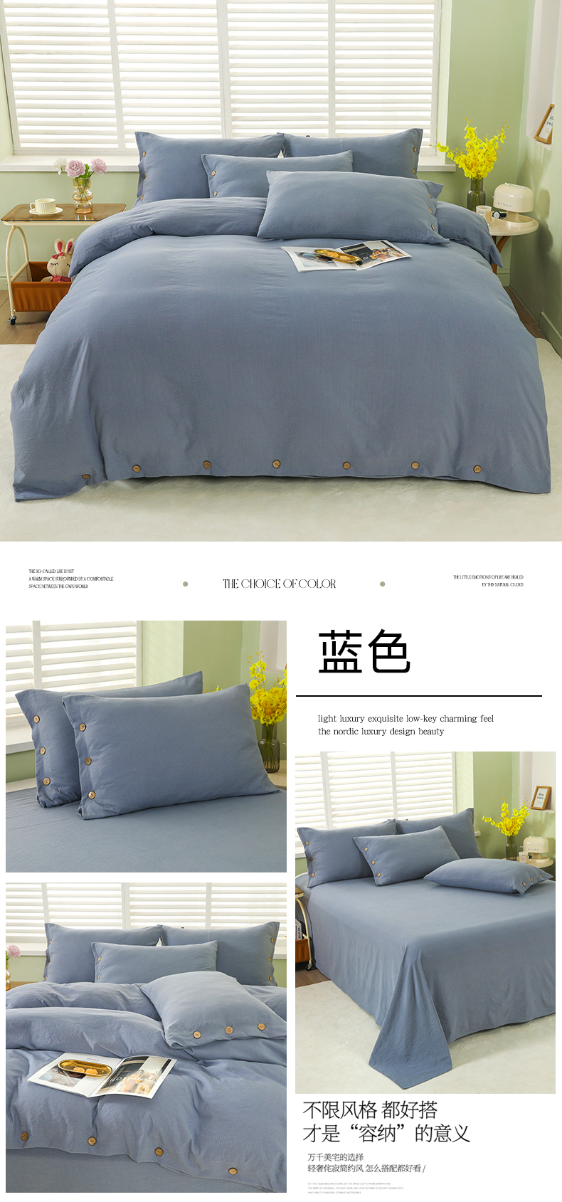 (总)博婷 2026新款水洗棉麻皱皱纱纽扣工艺款四件套,豆沙,湖蓝,灰色,姜黄,蓝色,浅咖