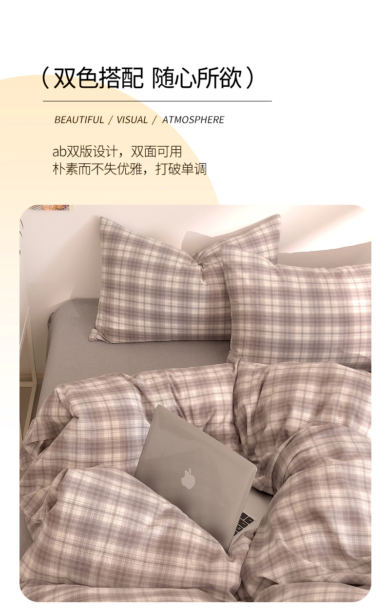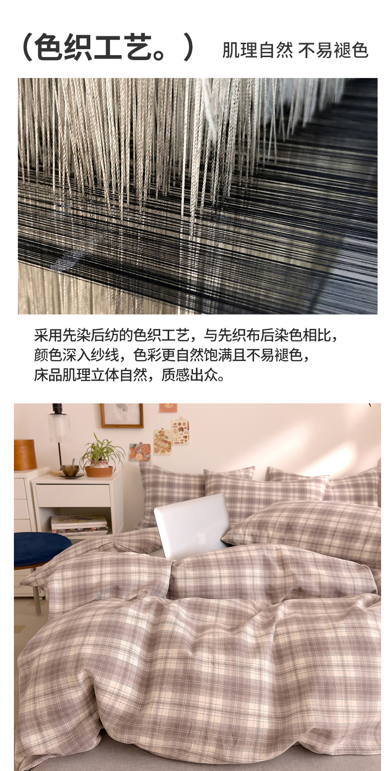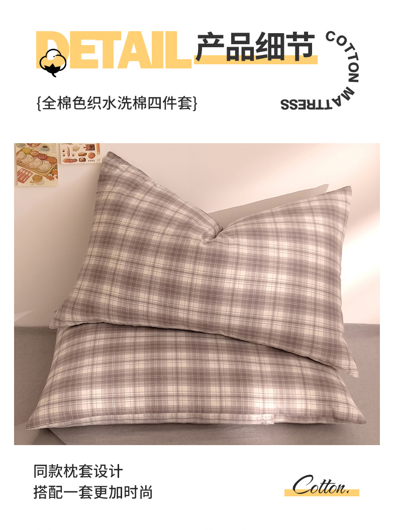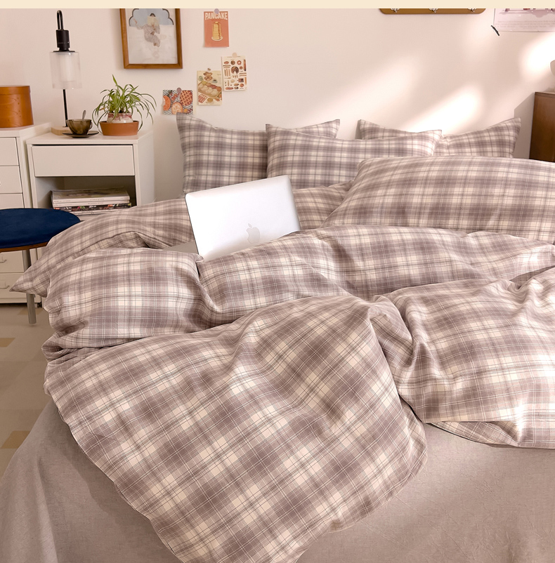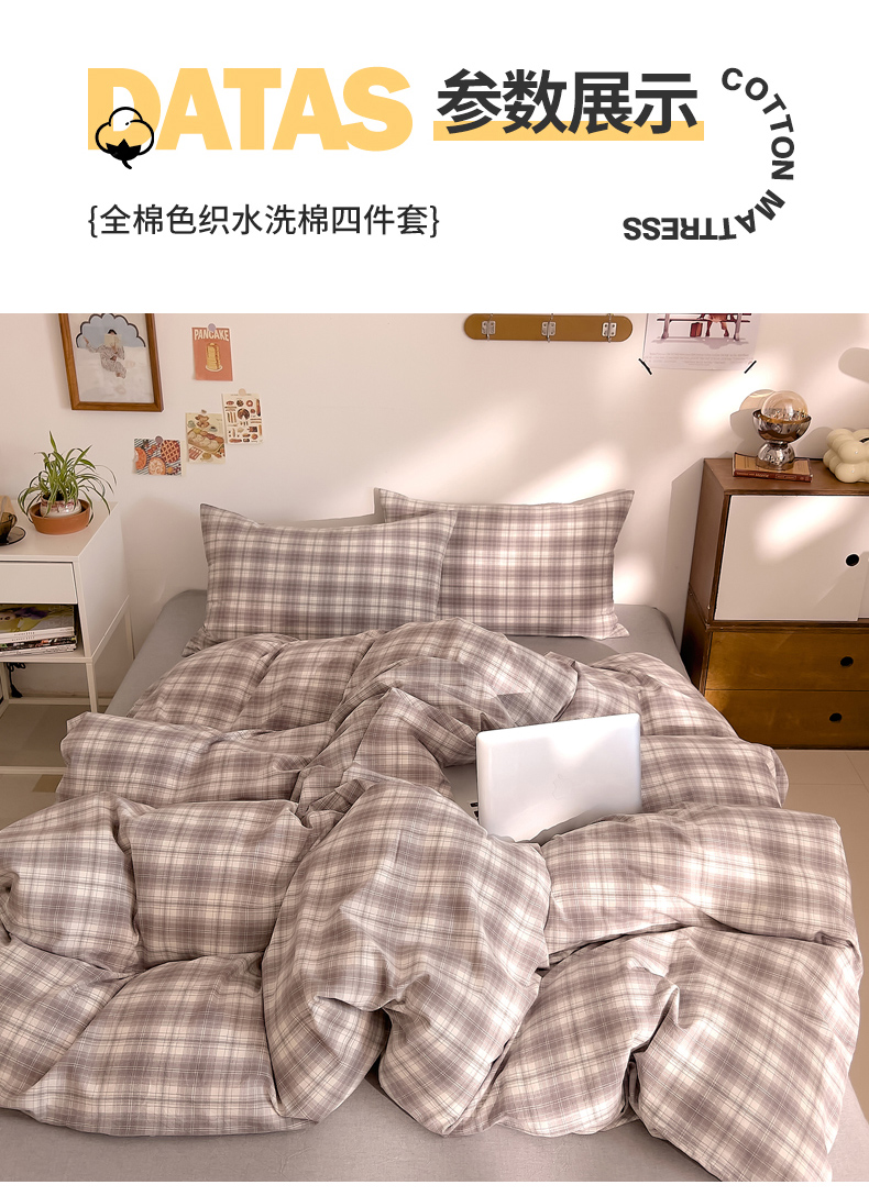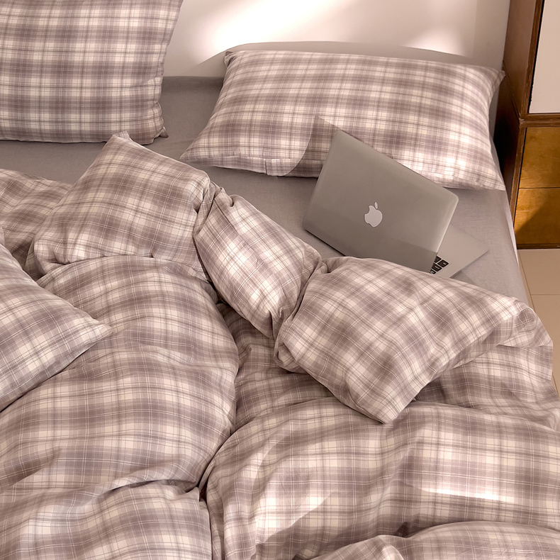 当前位置: 91家纺网 > 商品网购 > 床品套件 > 四件套 > 全棉普通四件套 > DoDo 兜兜 2026新款全棉纯棉A类条格水洗棉四件套-可定做尺寸 可可奈-烟灰