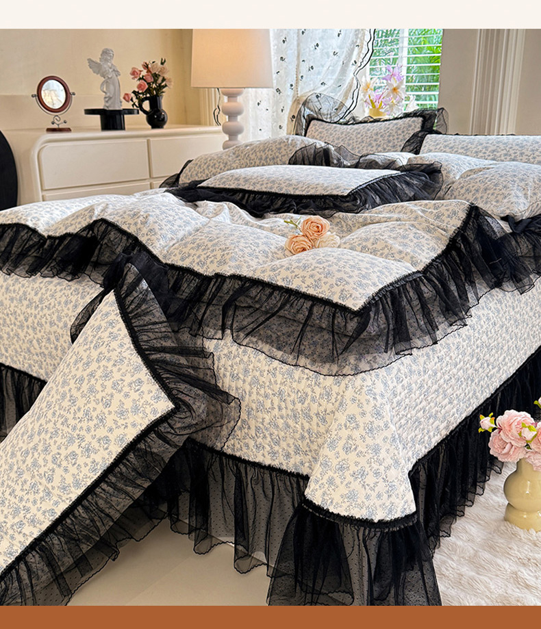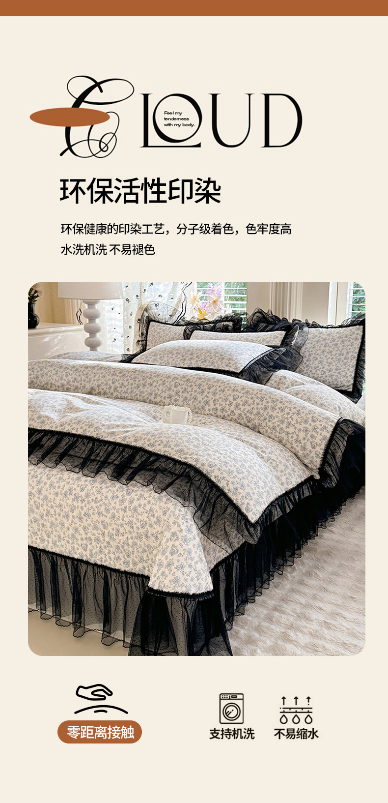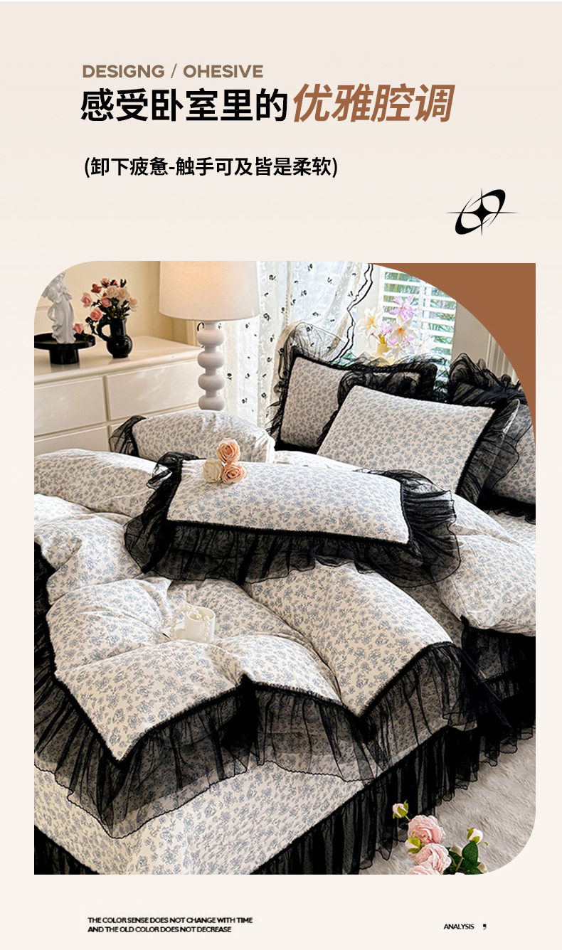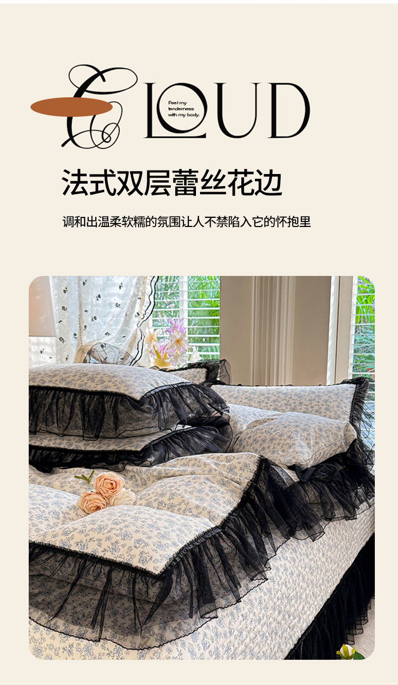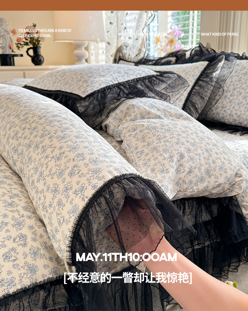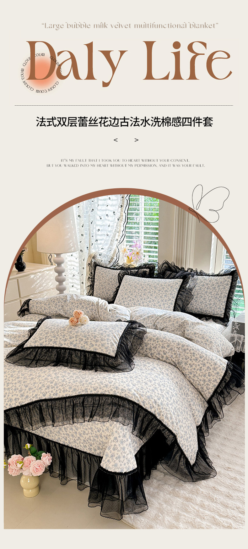 当前位置: 91家纺网 > 商品网购 > 床品套件 > 四件套 > 其它四件套 > 韩约家纺 2026新款法式双层蕾丝花边古法棉感四件套 蓝汐