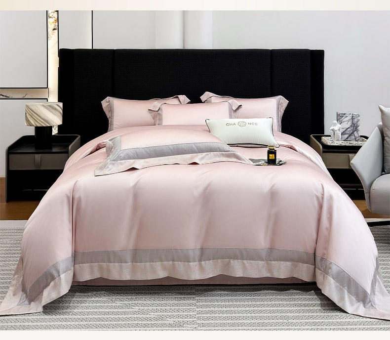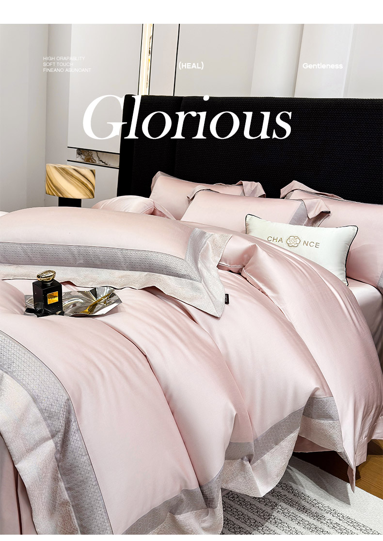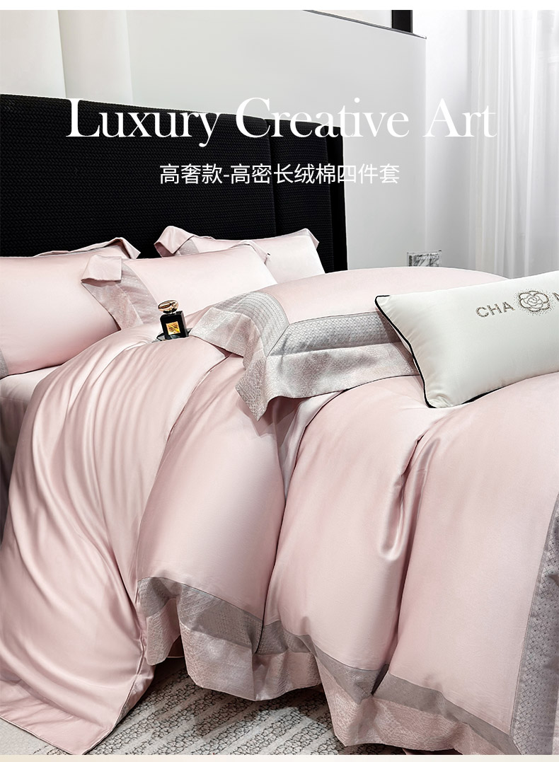商品名称: 2026新款高端轻奢风A类贡缎长绒棉四件套纯棉重工刺绣被套床单高级感床笠床上用品 格拉芙-芸粉
