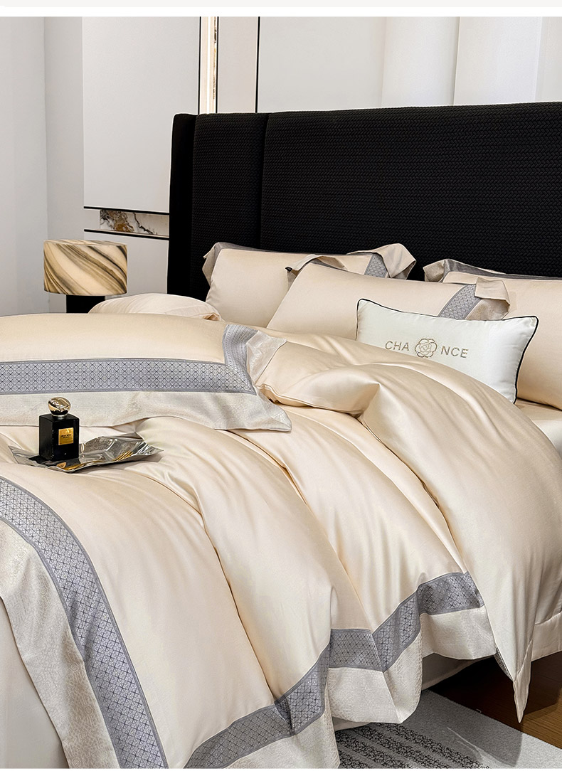 (总) 2026新款高端轻奢风A类贡缎长绒棉四件套纯棉重工刺绣被套床单高级感床笠床上用品,格拉芙-芸粉,格拉芙-柔杏