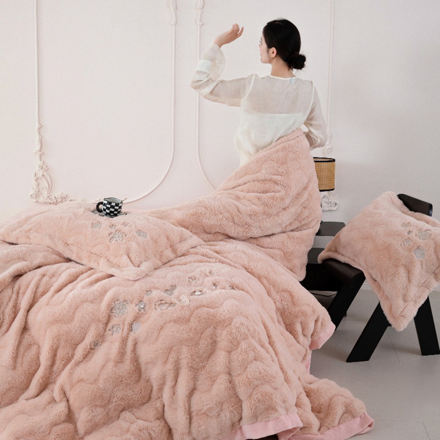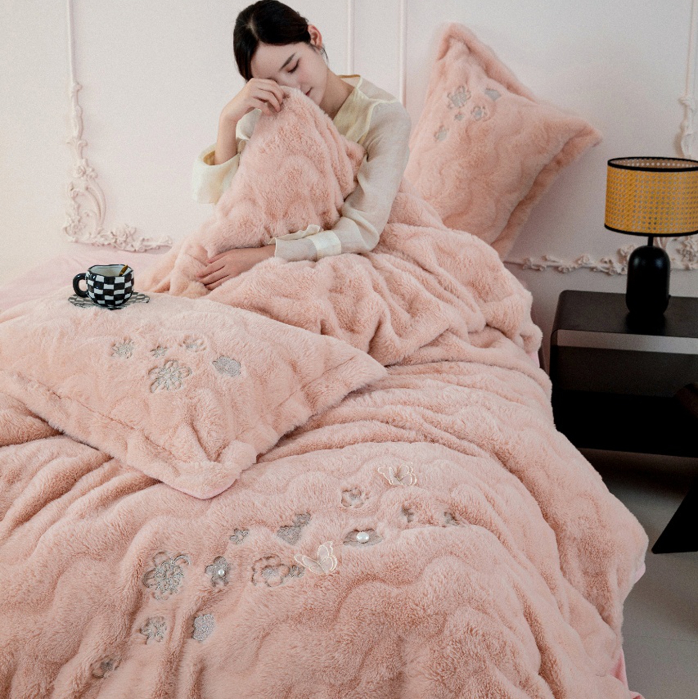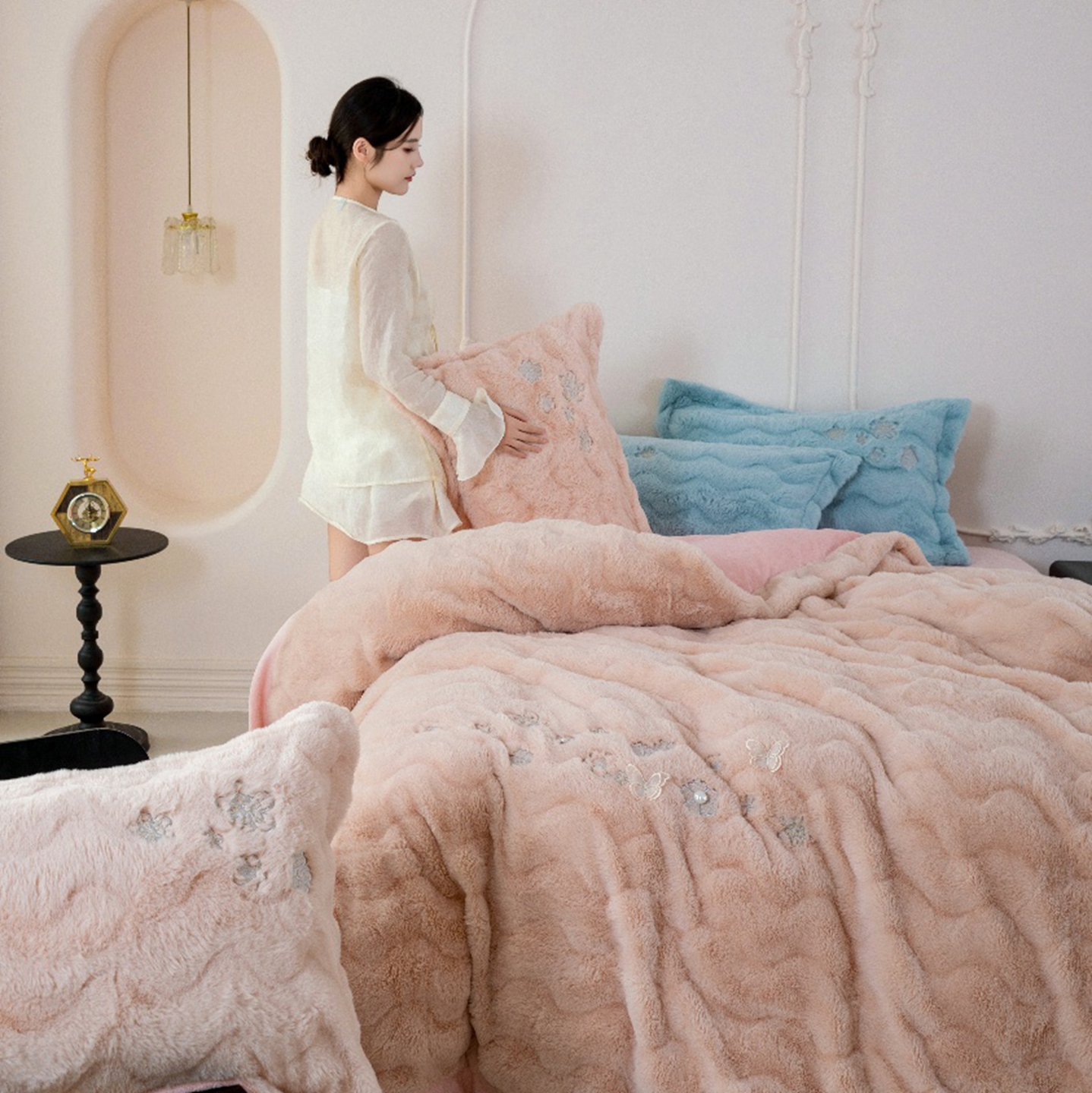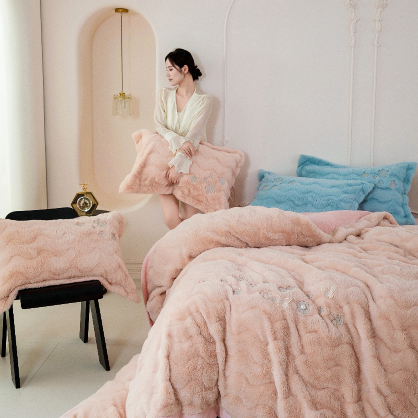 玖琳家纺 2026新款高端高克重水貂绒四件套-倾颜系列 倾颜 玉色