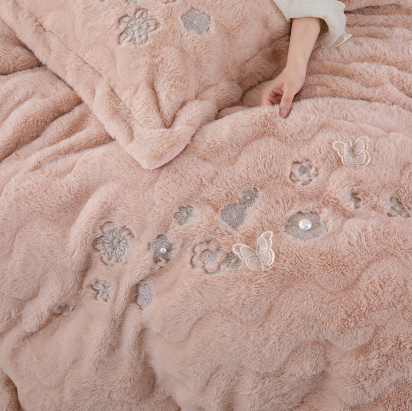 商品名称:玖琳家纺 2026新款高端高克重水貂绒四件套-倾颜系列 倾颜 玉色