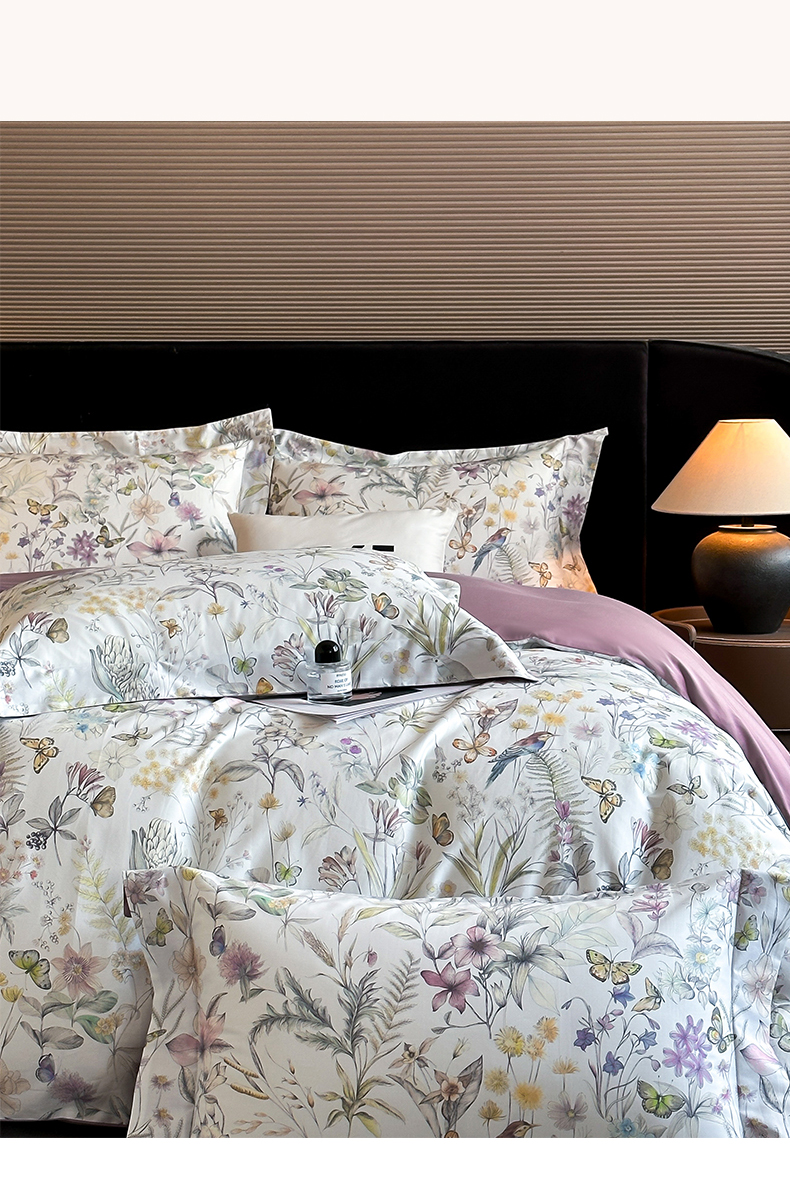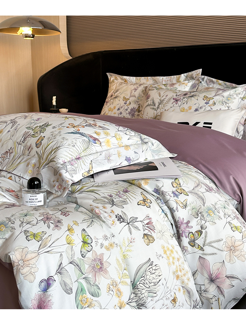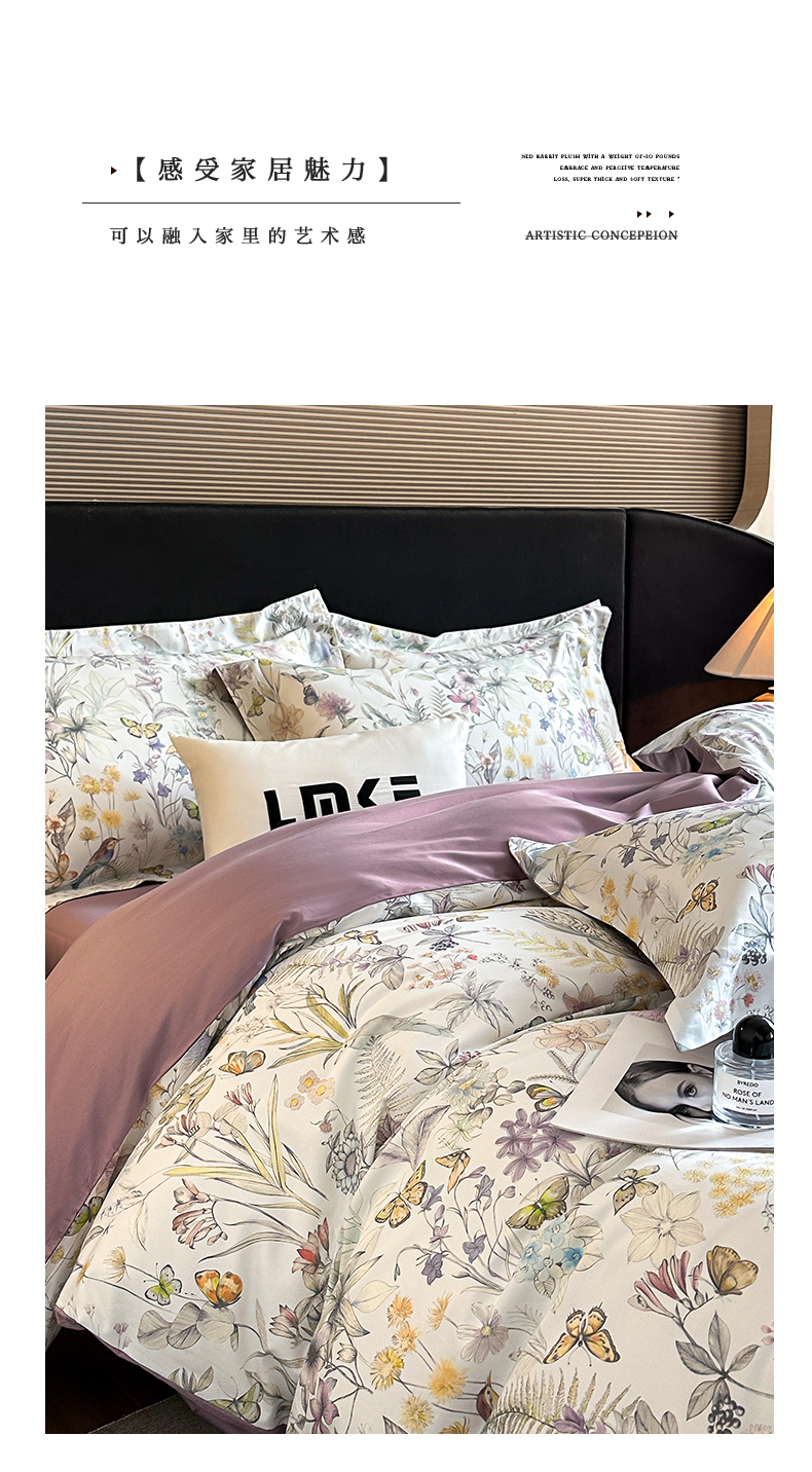 商品名称:蓝米卡夫 2026春季新款-60S长绒棉数码印花贡缎系列四件套(礼盒) 花枝嫣然