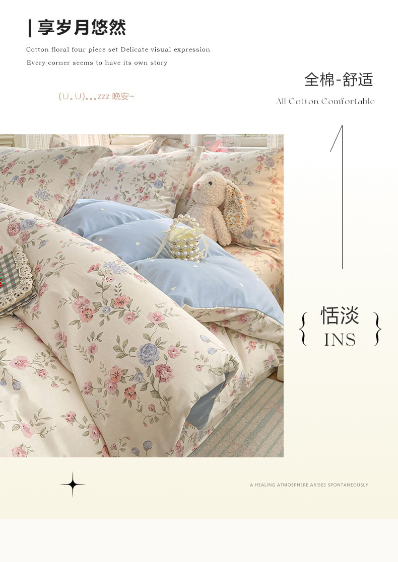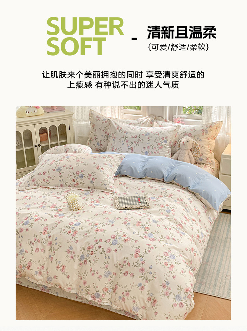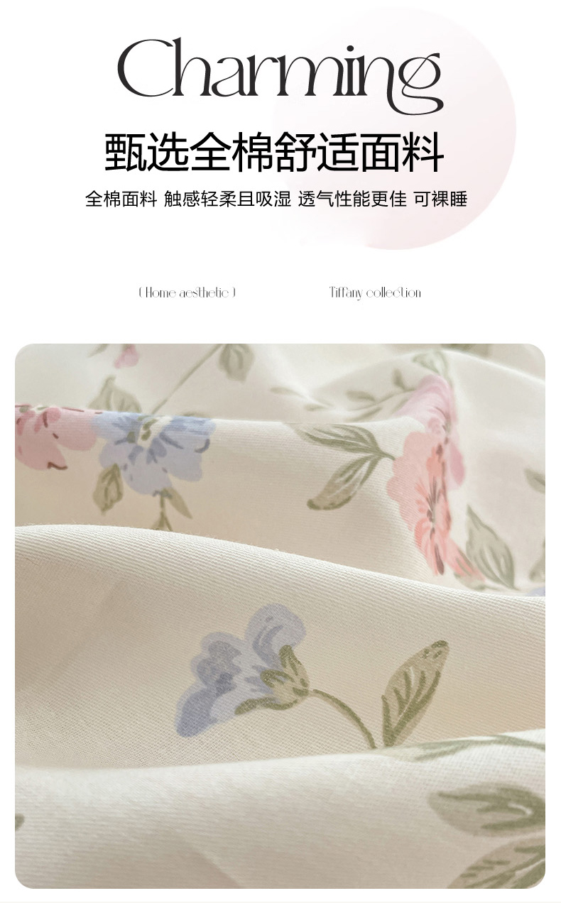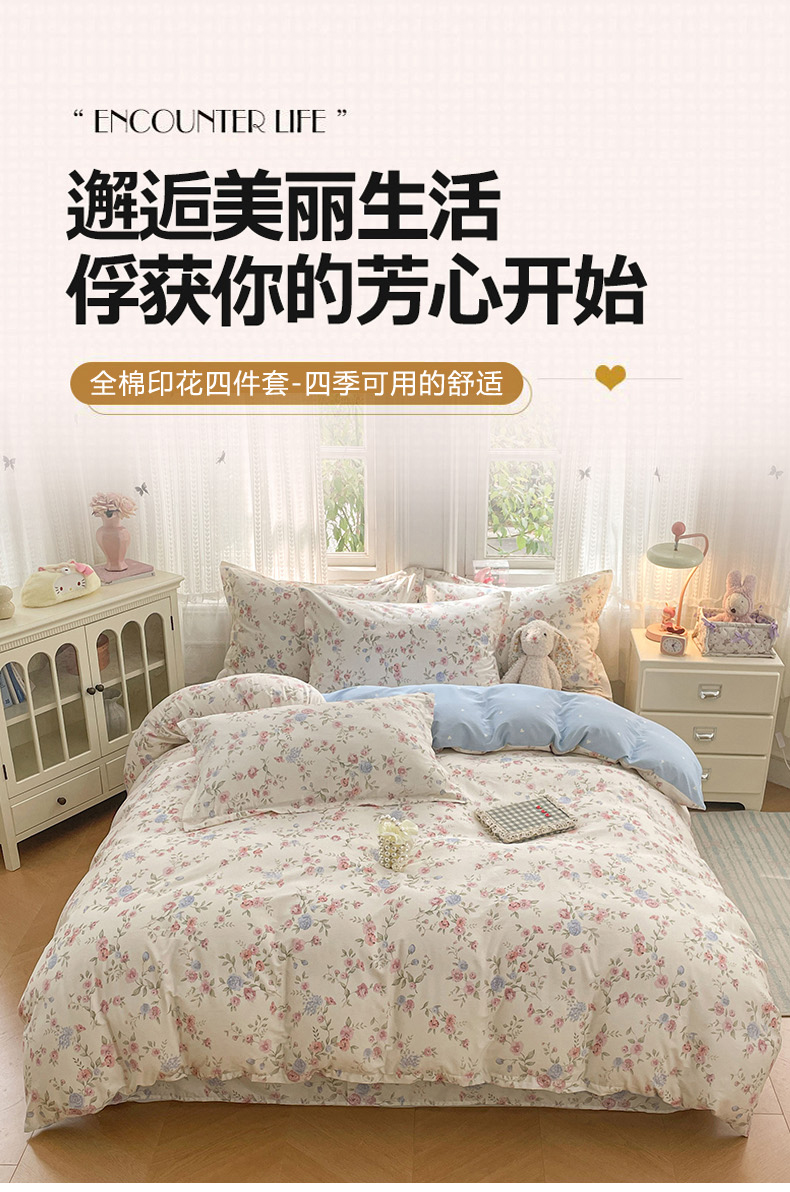 商品名称:世爵 2026春夏新款全棉纯棉印花小清新四件套 妙语花香