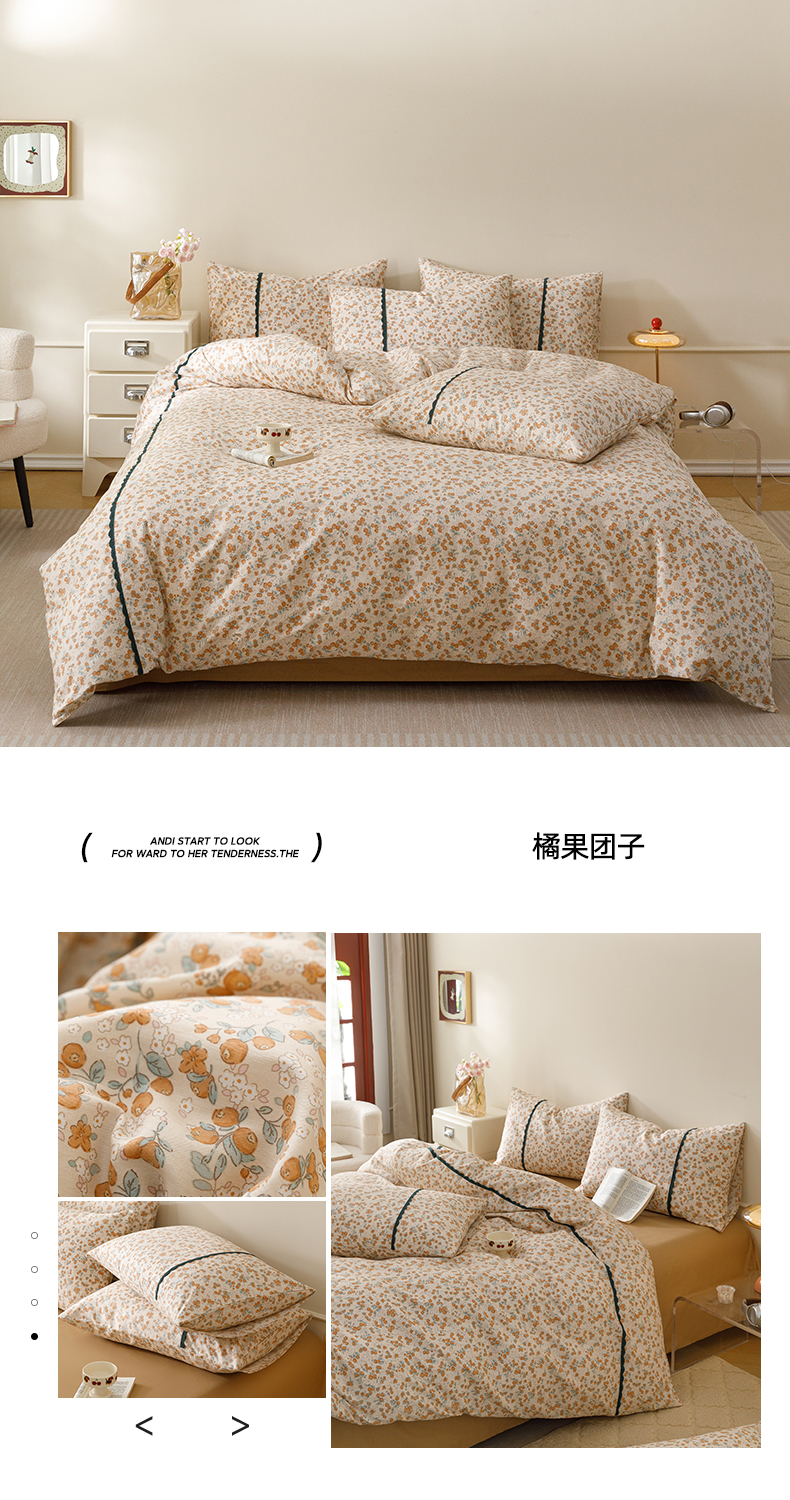 当前位置: 91家纺网 > 商品网购 > 床品套件 > 四件套 > 全棉普通四件套 > 简宜家居(朝初家纺) 2026新款13070全棉纯棉40支斜纹蕾丝四件套 青柠果络