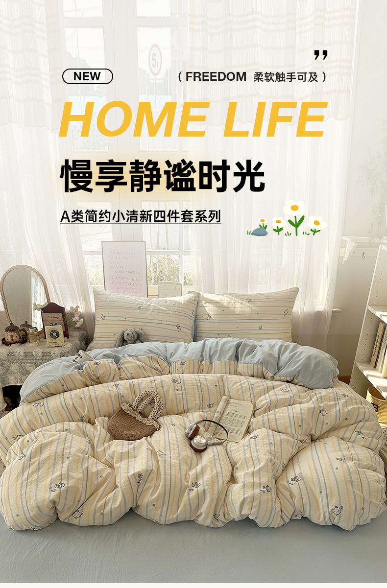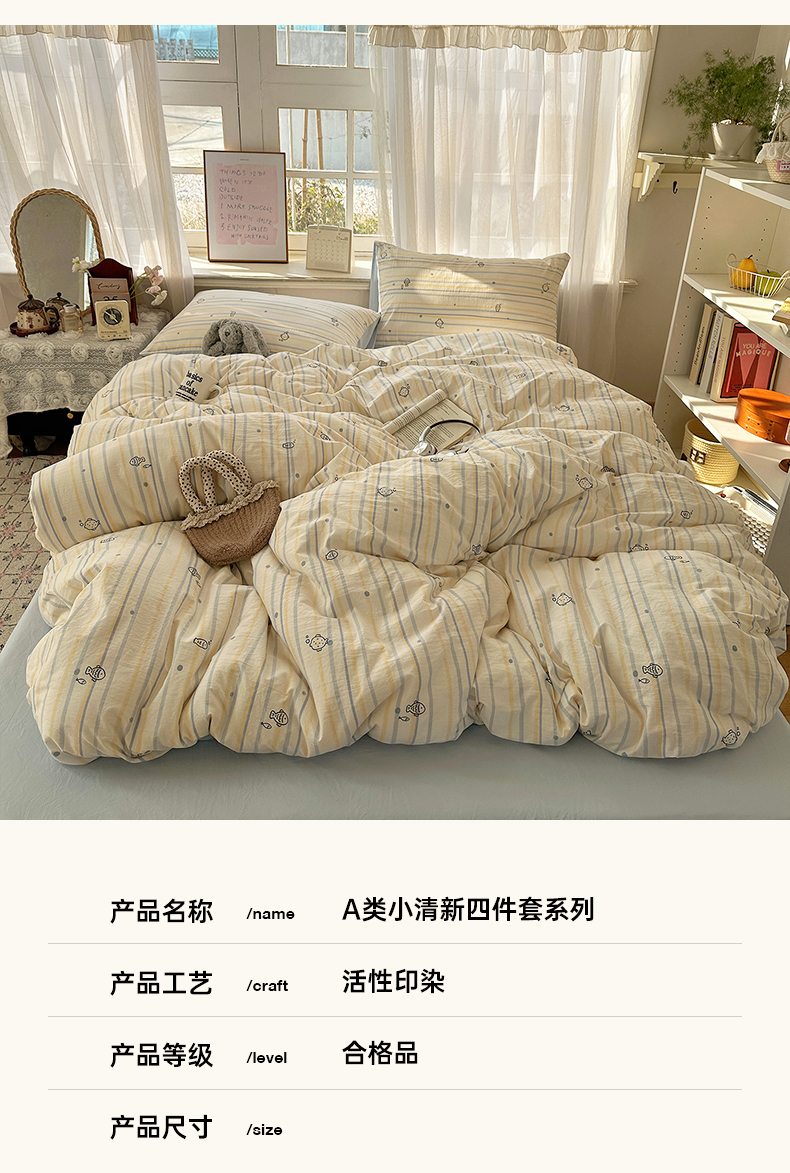 当前位置: 91家纺网 > 商品网购 > 床品套件 > 四件套 > 水洗棉四件套 > 沐芷 2026 【提供买家秀】古法水洗仿棉A类四件套床上用品三件套被套被罩床笠款---第二波 漫游小鱼