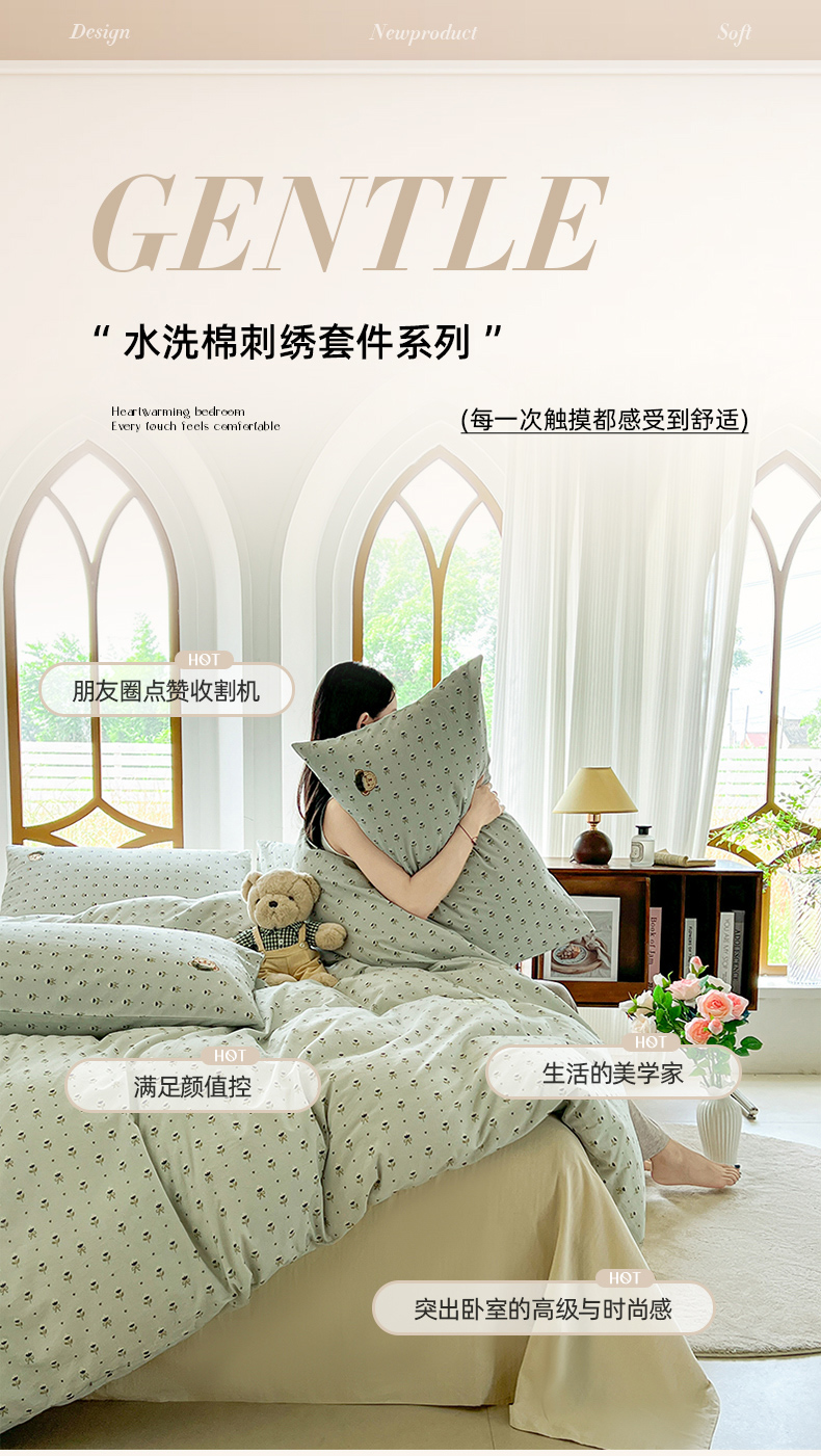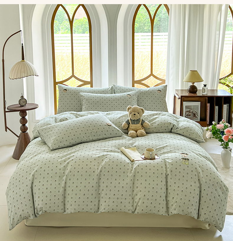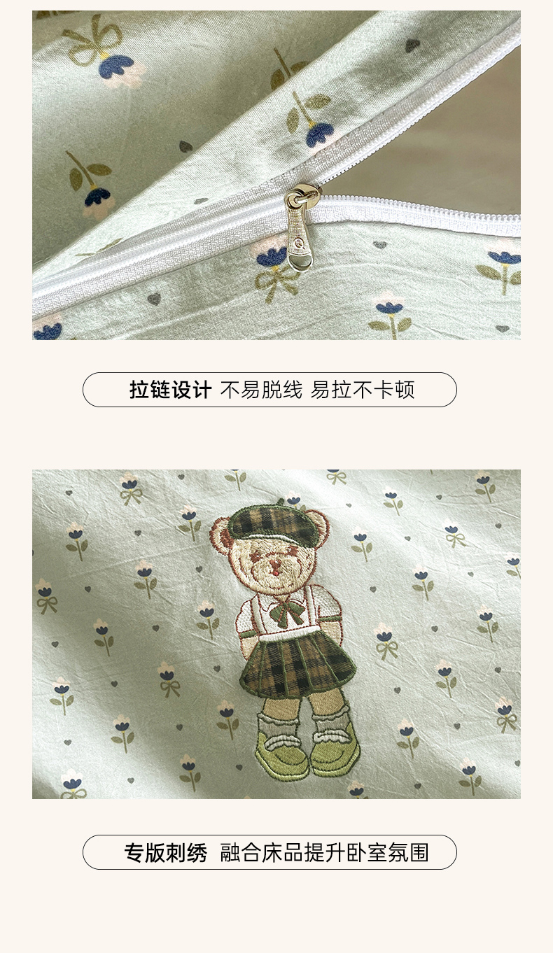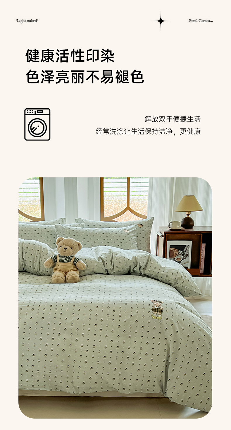 商品名称:(总)欣晴家纺 2026新款软糯云朵棉水洗棉刺绣三件套四件套嘟嘟小熊系列(风格1)