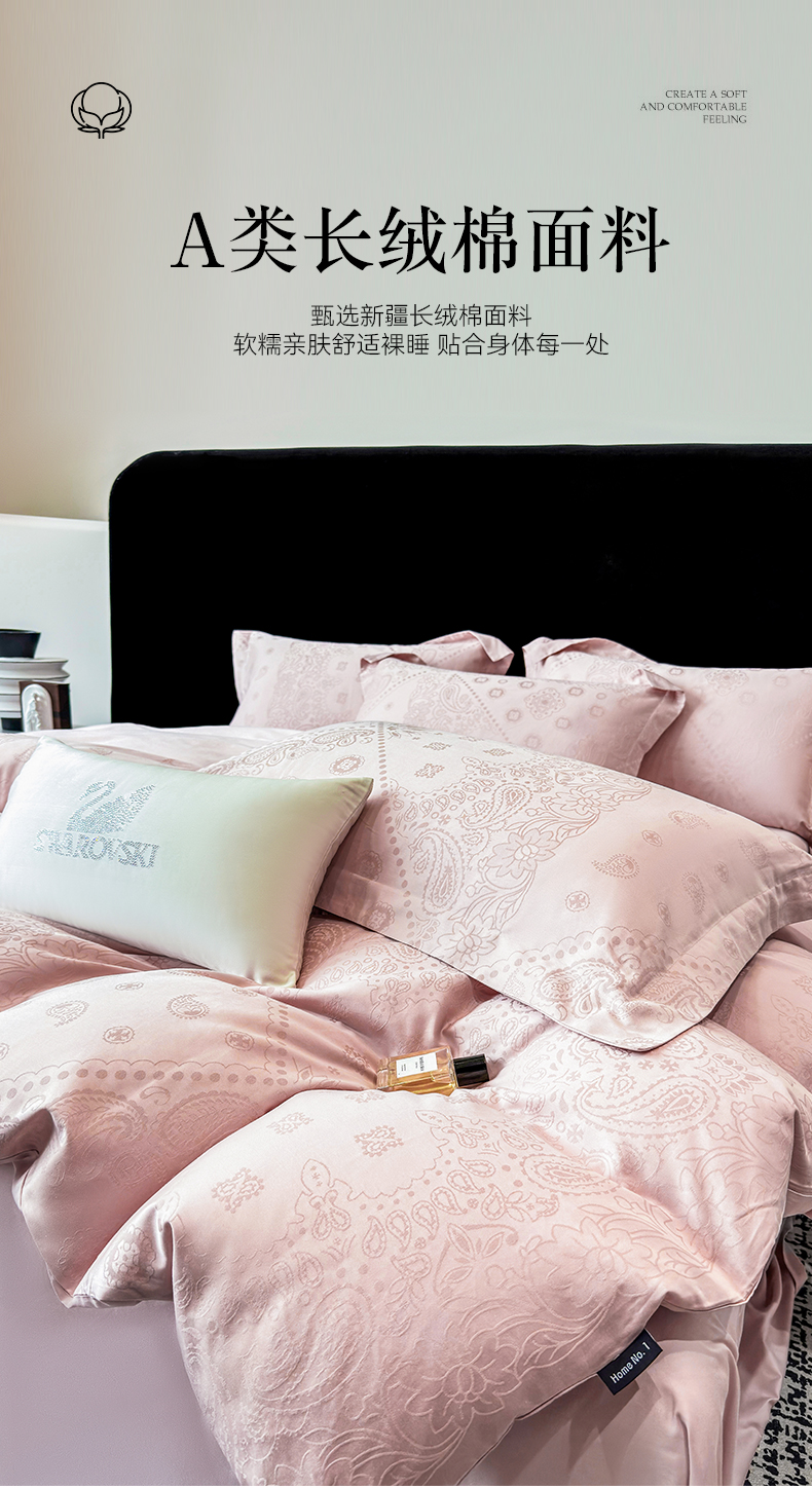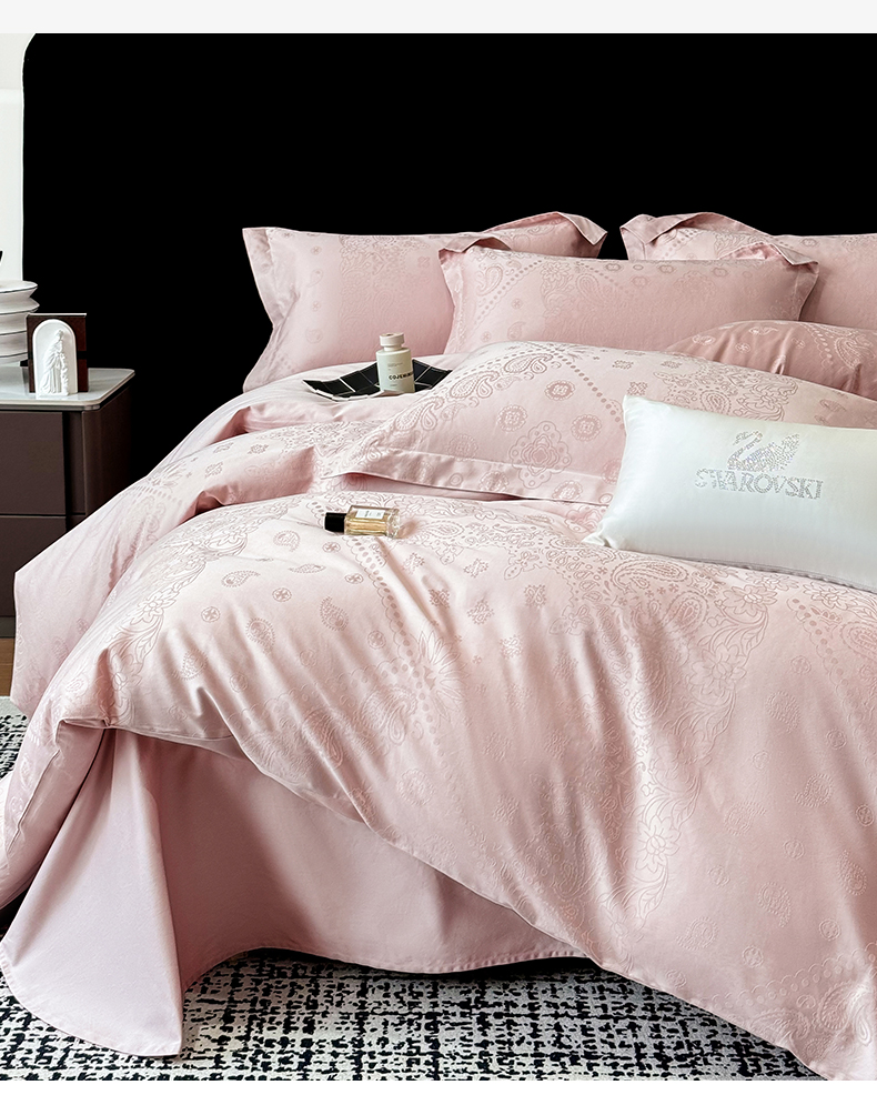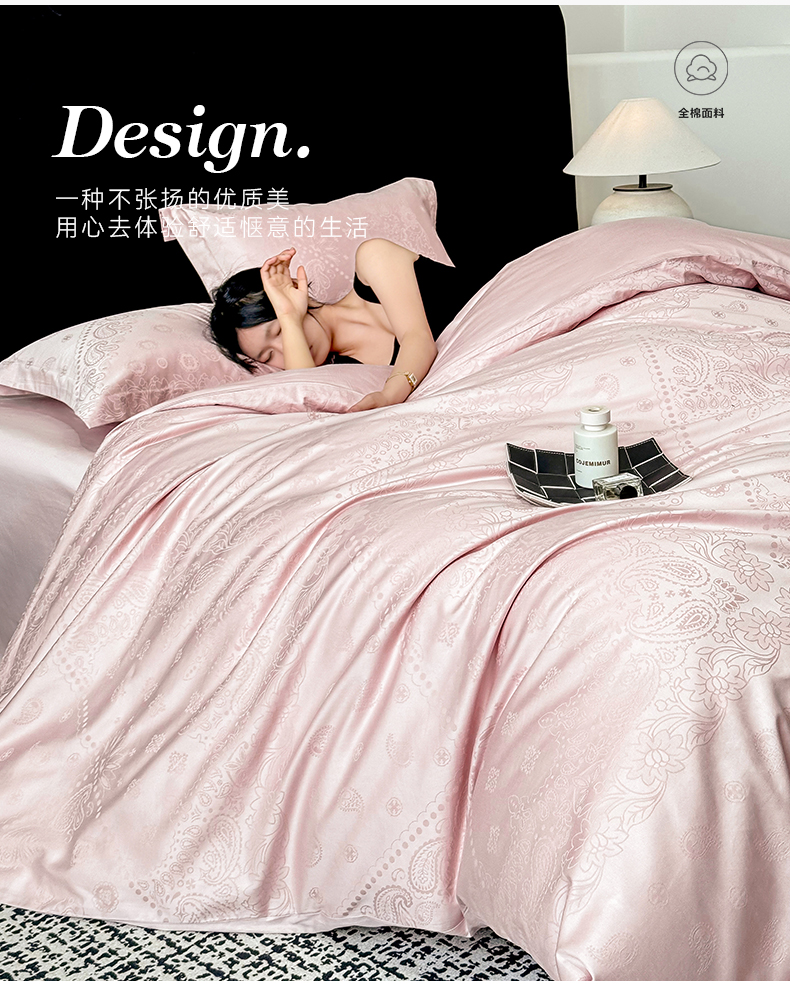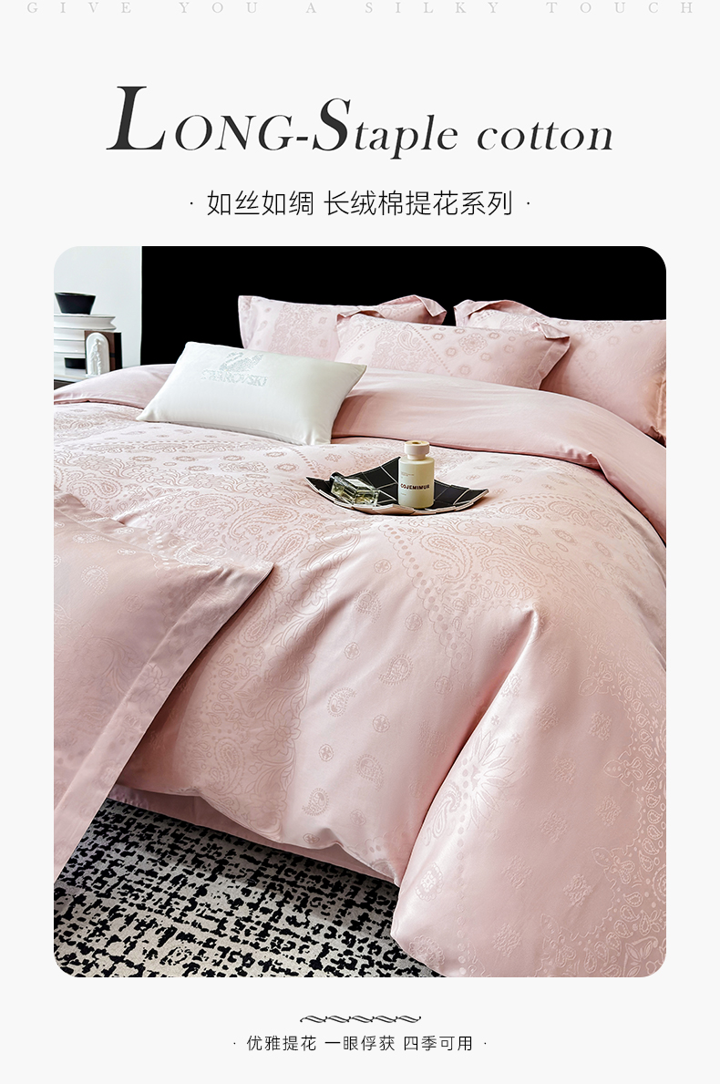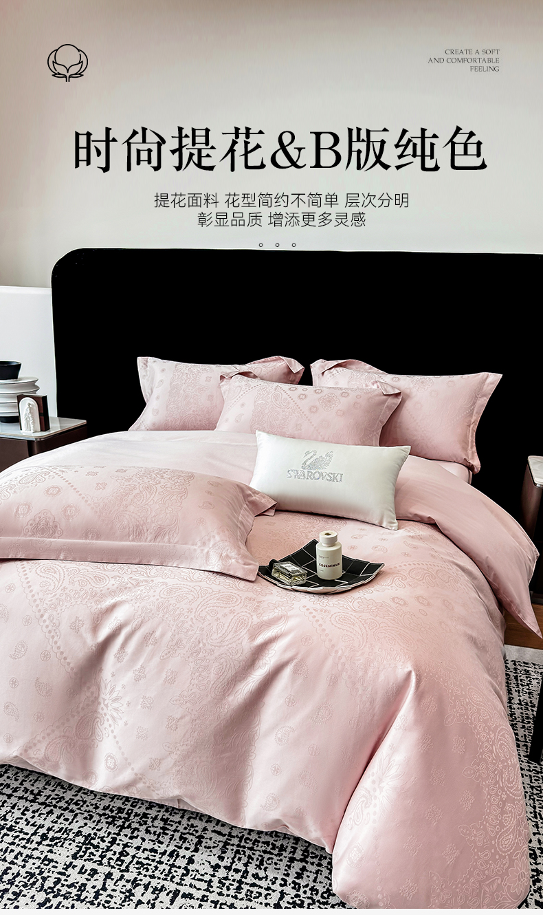 当前位置: 91家纺网 > 商品网购 > 床品套件 > 四件套 > 长绒棉四件套 > 家居1号家纺 2026春夏新款50双股长绒棉全棉纯棉提花四件套-费罗德【控价券后价格不得低于:标准269元,加大289元!会员优惠10元!】 费罗德-少女粉