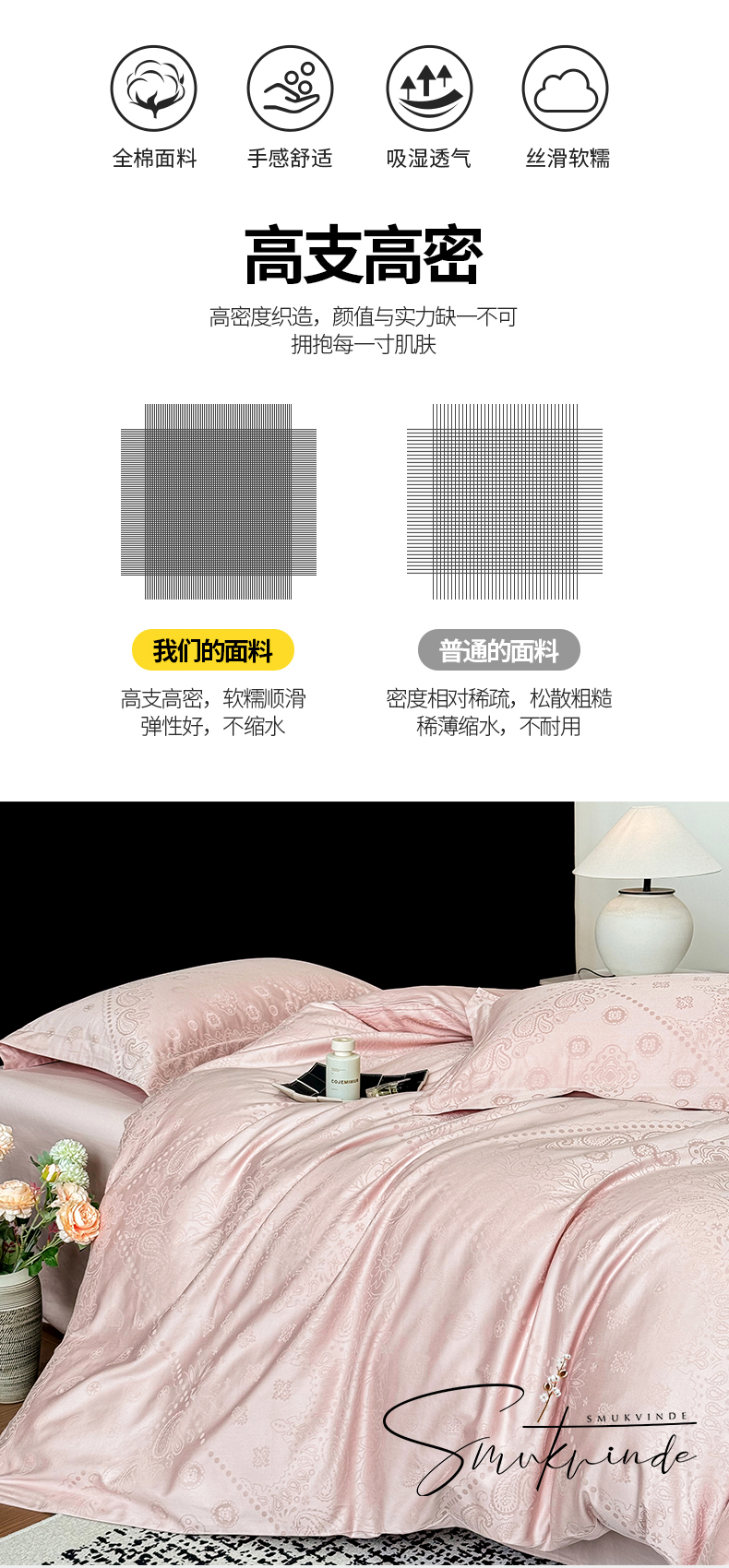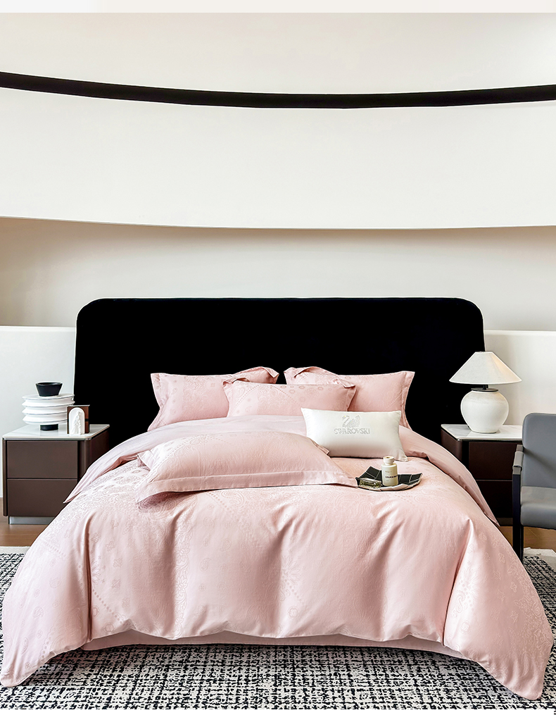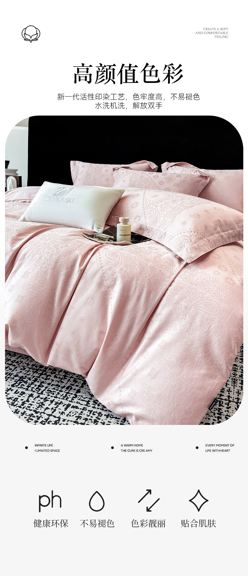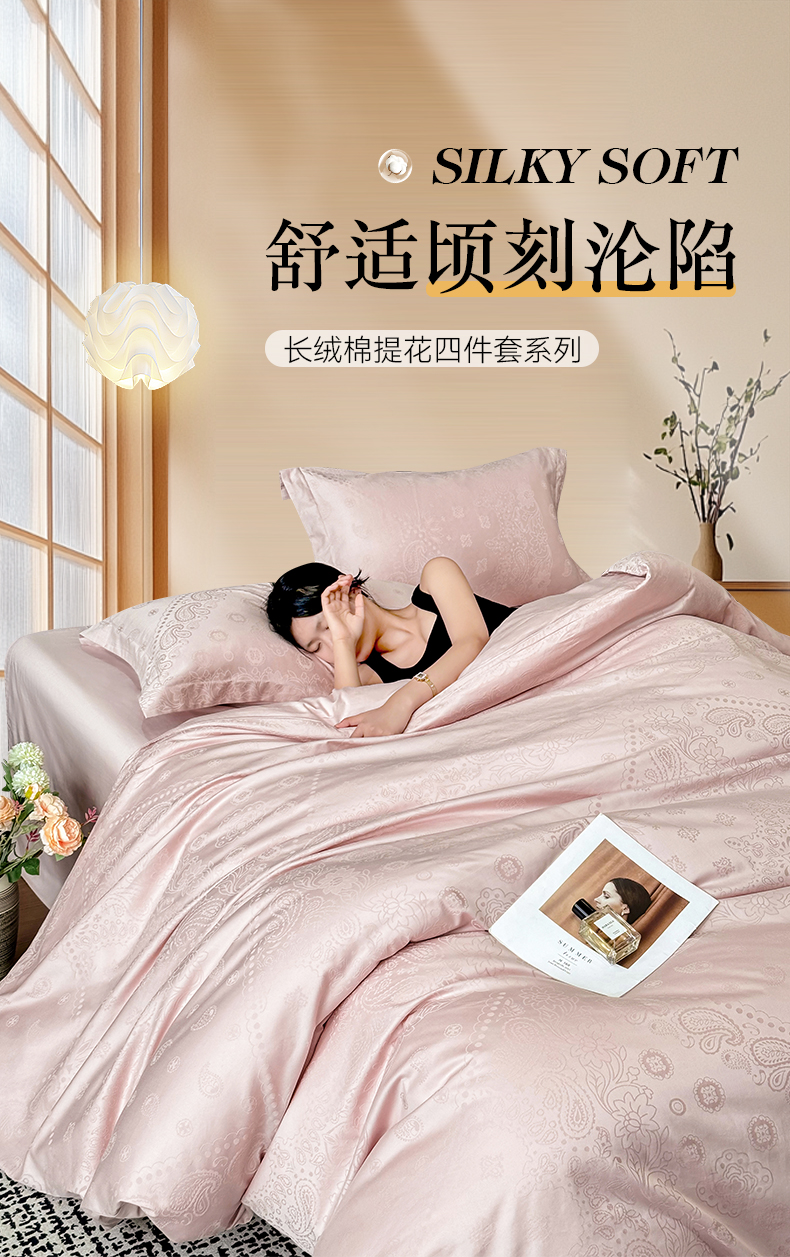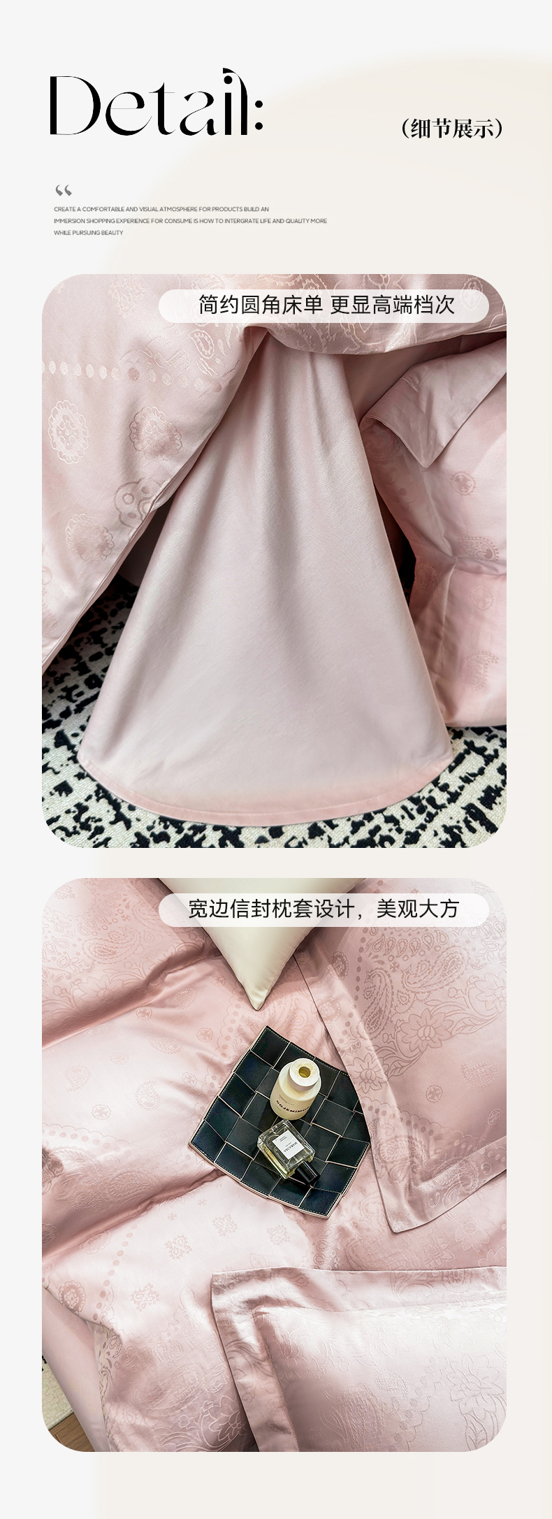 当前位置: 91家纺网 > 商品网购 > 床品套件 > 四件套 > 长绒棉四件套 > 家居1号家纺 2026春夏新款50双股长绒棉全棉纯棉提花四件套-费罗德【控价券后价格不得低于:标准269元,加大289元!会员优惠10元!】 费罗德-少女粉