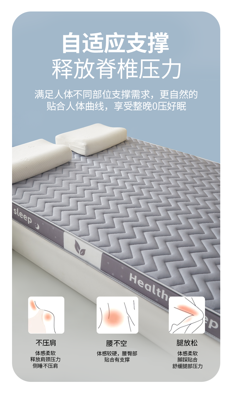 当前位置: 91家纺网 > 商品网购 > 床垫/床褥 > 普通床垫 > 月茶家纺 2026新款立体三色波浪乳胶海绵床垫 灰色9cm