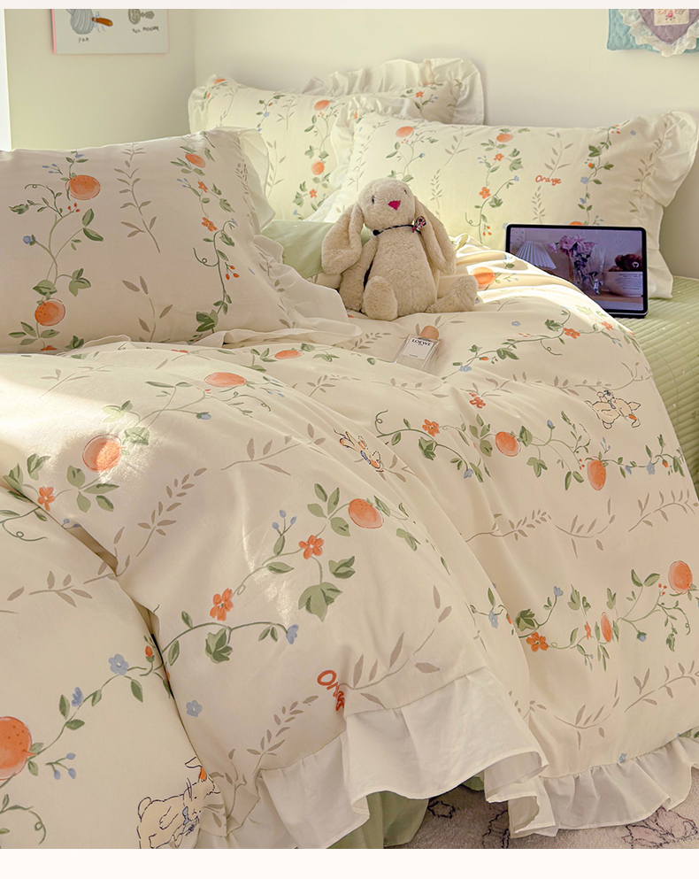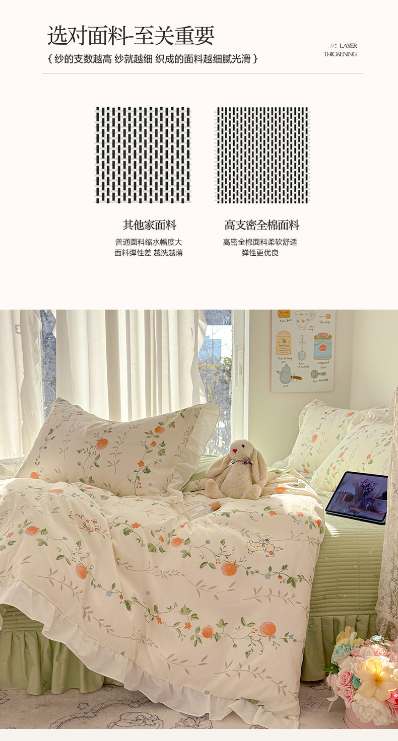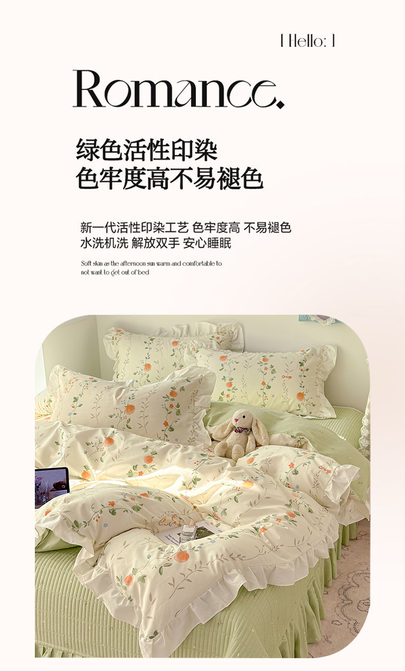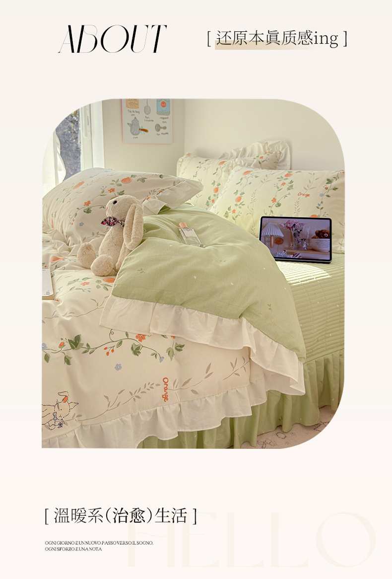 当前位置: 91家纺网 > 商品网购 > 床品套件 > 四件套 > 全棉普通四件套 > 简宜家居(朝初家纺) 2026新款全棉绗缝花边床盖四件套 牵藤兔