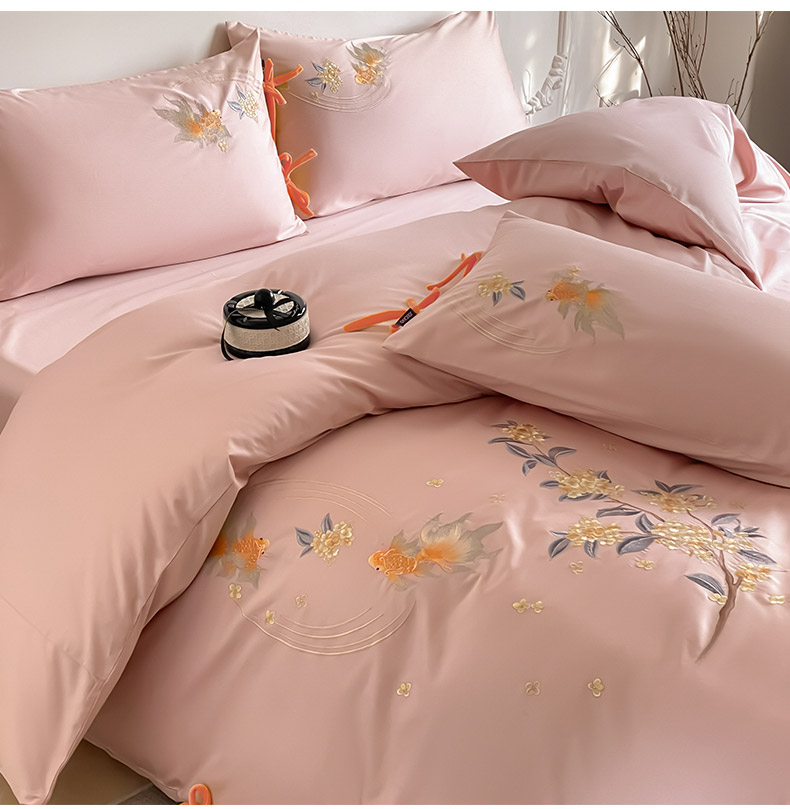 当前位置: 91家纺网 > 商品网购 > 床品套件 > 四件套 > 长绒棉四件套 > (总) 2026新款50S双股A类长绒棉纯棉四件套全棉喜庆刺绣被套床单床笠-福瑞锦鲤