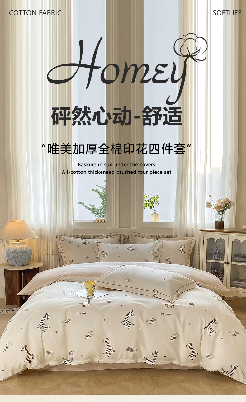 当前位置: 91家纺网 > 商品网购 > 床品套件 > 四件套 > 全棉普通四件套 > XIWEN-希文家纺 2026新款40支全棉纯棉13376数码印花四件套-第一批 斑马斑马