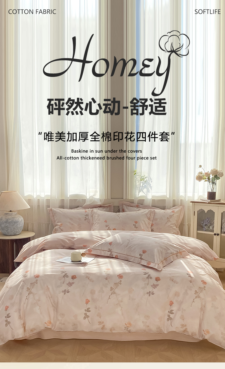 当前位置: 91家纺网 > 商品网购 > 床品套件 > 四件套 > 全棉普通四件套 > XIWEN-希文家纺 2026新款40支全棉纯棉13376数码印花四件套-第一批 倩影-粉