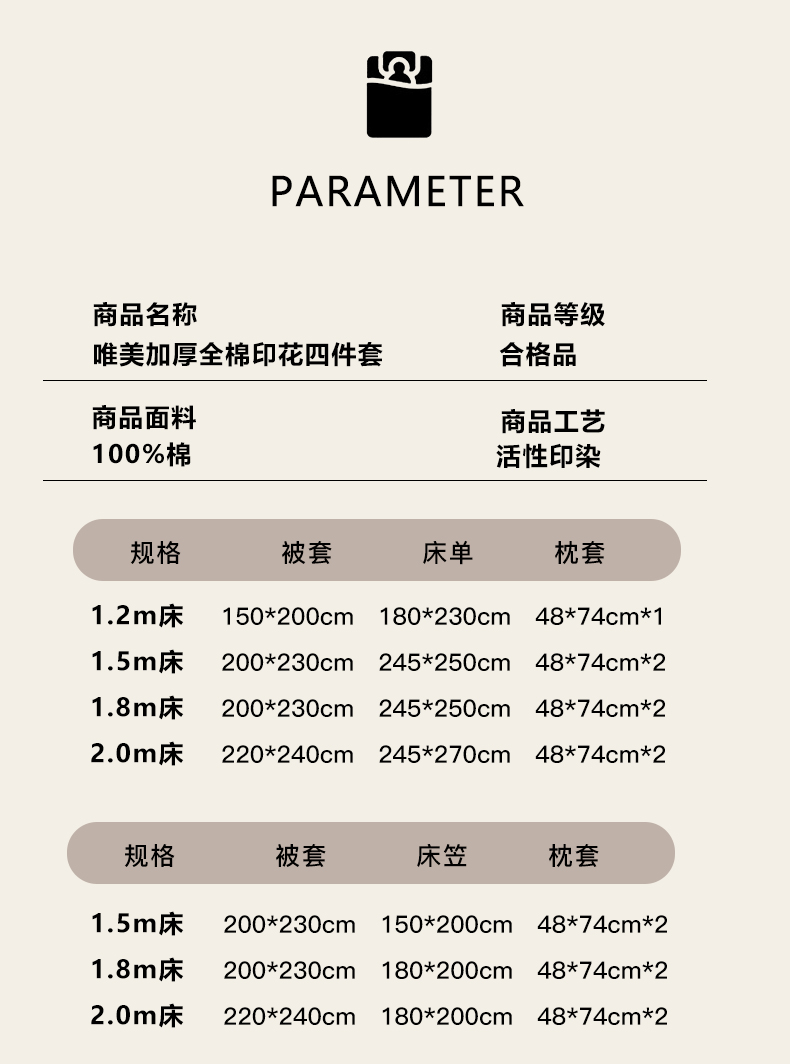 【床笠款】1.8四件套-被套200x230 | ¥140.00 |