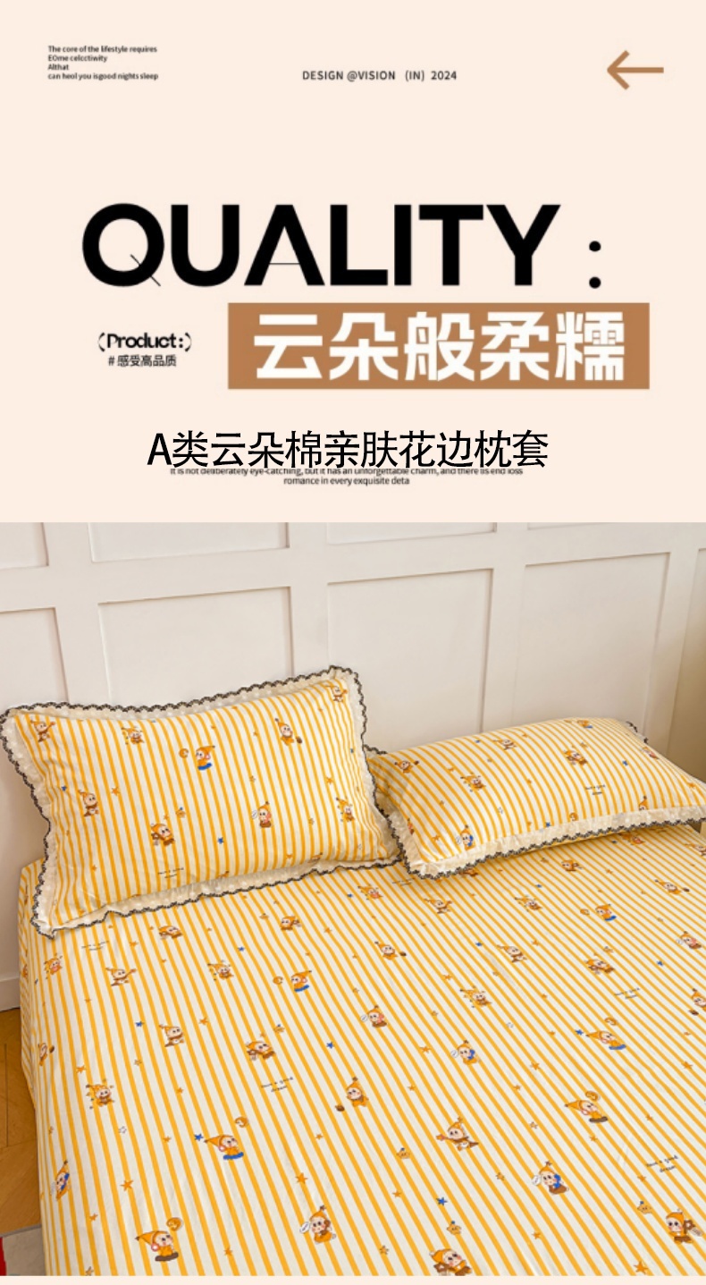 • 91家纺网 家纺一手货源 找家纺 梦舒羽 2026新款A类云朵棉蕾丝花边枕套宿舍单人单只一只装枕芯 小星愿(单层蕾丝花边)