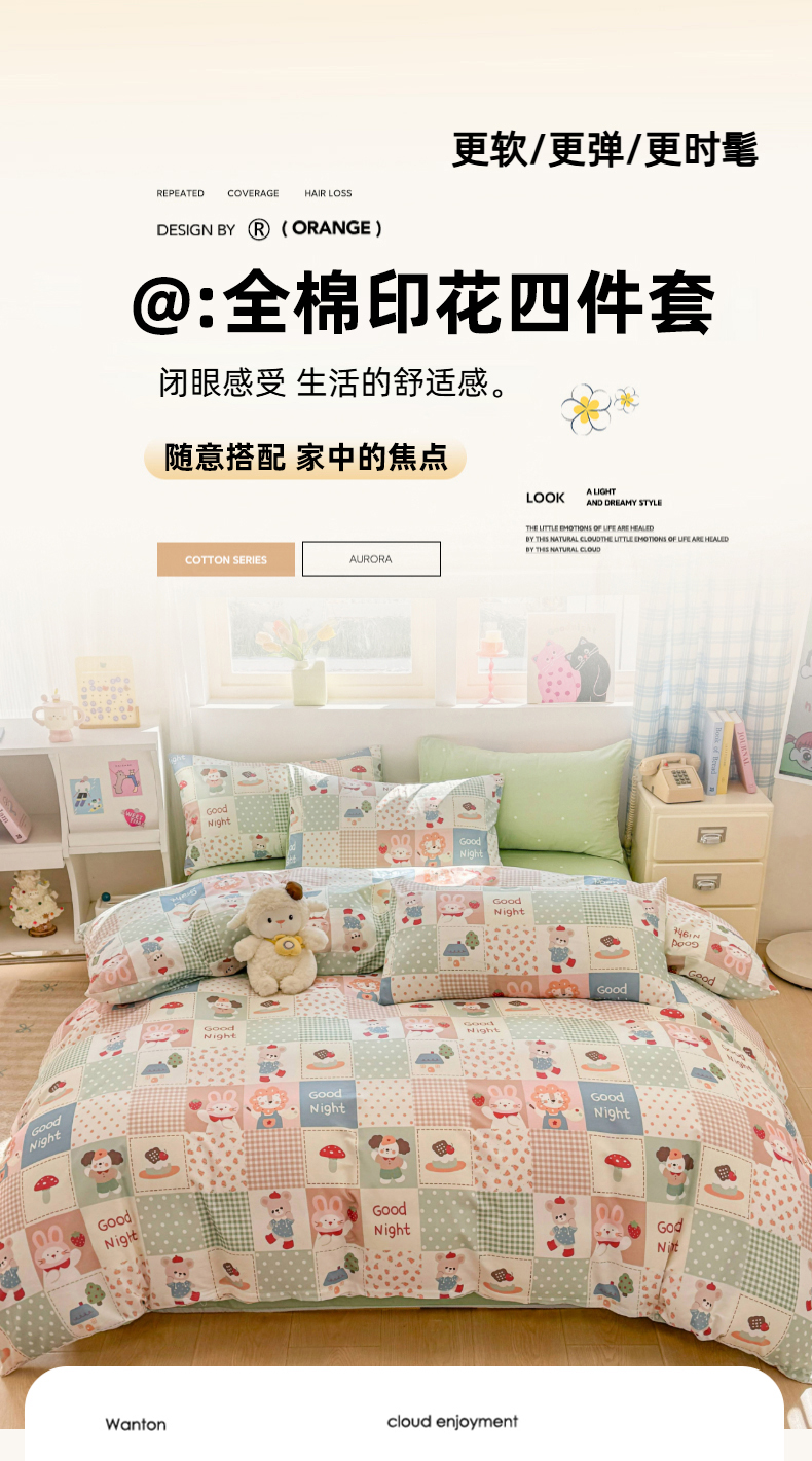 (总)缦彩 2026新款全棉纯棉印花床笠单品床笠床笠单件,宠岛乐园,格纹蝴蝶,格子狗-咖,格子狗-蓝,莱德-粉,梦想家园,提琴猫,春光里,香菊-绿,组合图仅做展示不可下单