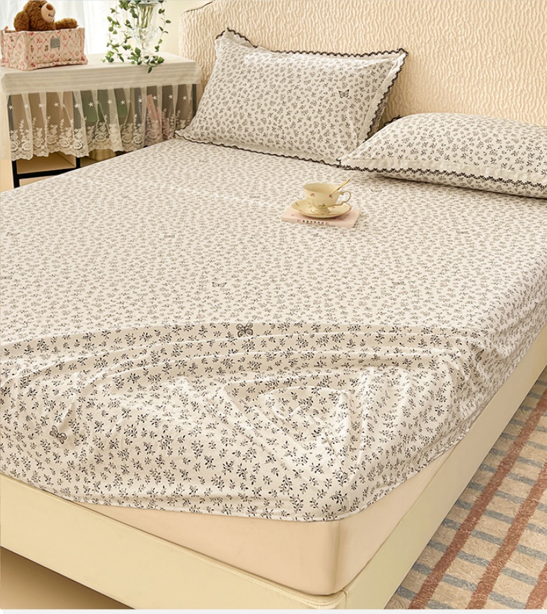 圣比熊 2026新款A类云朵棉亲肤四季款床笠席梦思床罩全包床单三件套 花间迷离
