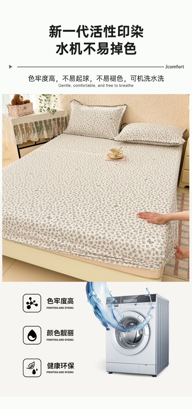 (总)圣比熊 2026新款原麻夹棉床笠机洗家用防滑透气四季款加厚床罩床垫床单保护套三件套-新款,古堡花园-咖,金枝玉叶,春风序,东方墨兰,繁花,浮绘花影-白,漫步花丛-蓝,秋日,素锦