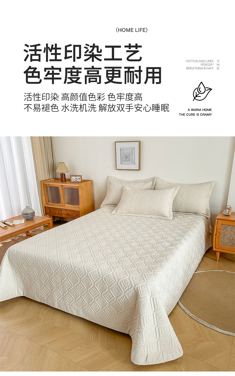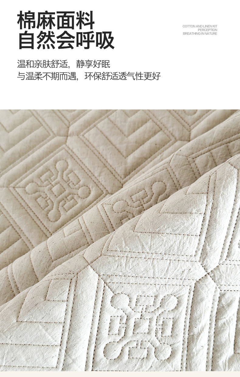 商品名称:欧夏家纺 2026新款欧式棉麻床盖三件套夹棉床盖床护垫 克西米亚