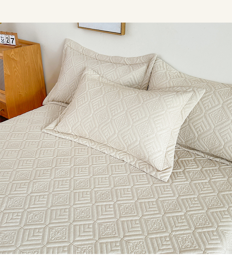 (总)欧夏家纺 2026新款欧式棉麻床盖三件套夹棉床盖床护垫,波浪纹,克西米亚