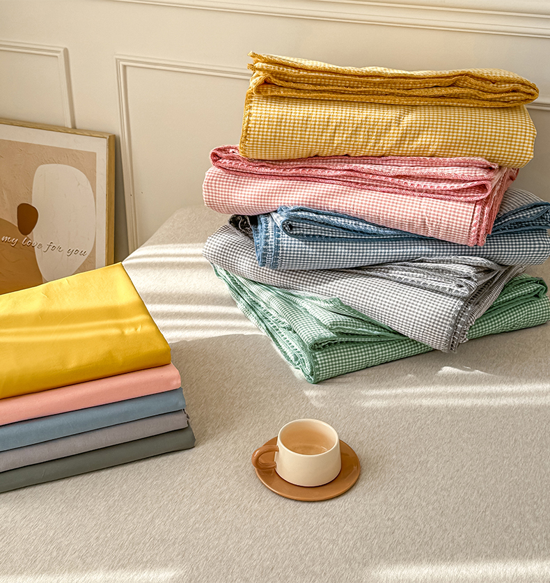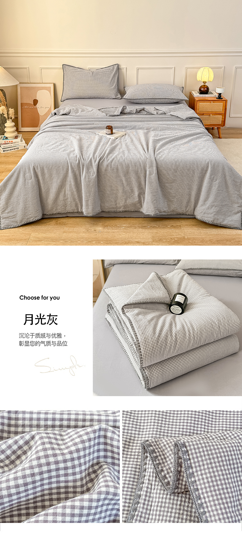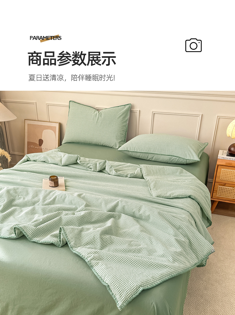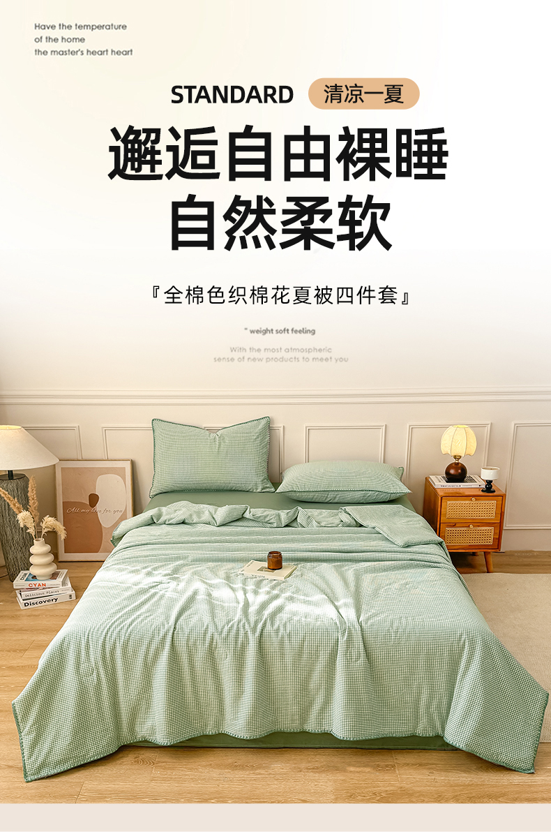 • 91家纺网 家纺一手货源 找家纺 (总)鸣升家纺 2026新款全棉色织水洗棉贝壳边棉花空调被夏凉被夏被四件套,果绿,姜黄,莎粉,天空蓝,月光灰,组合图仅供参考不可下单