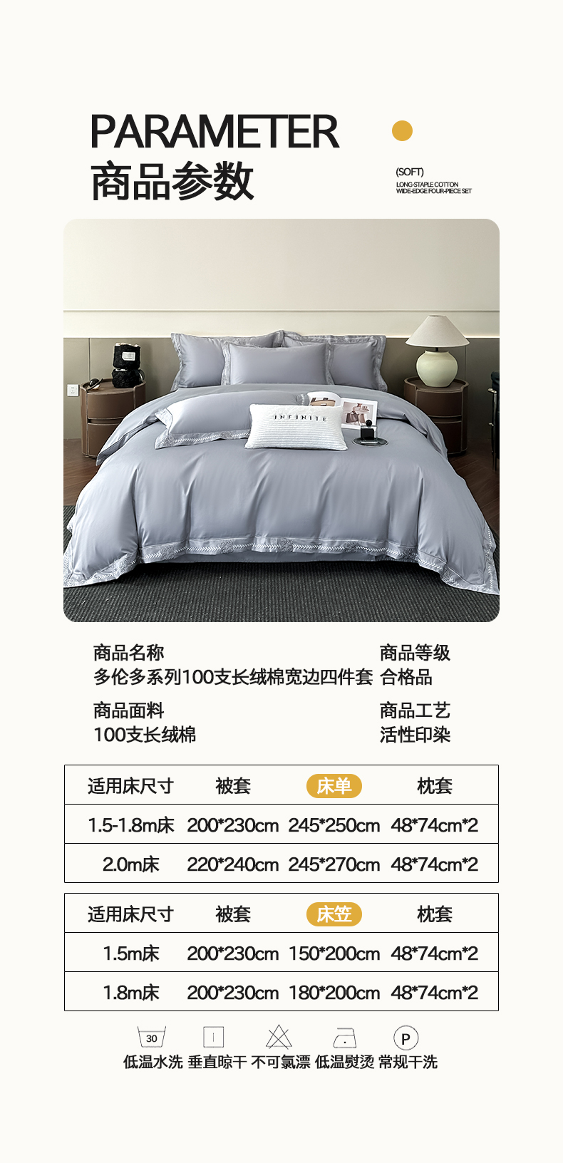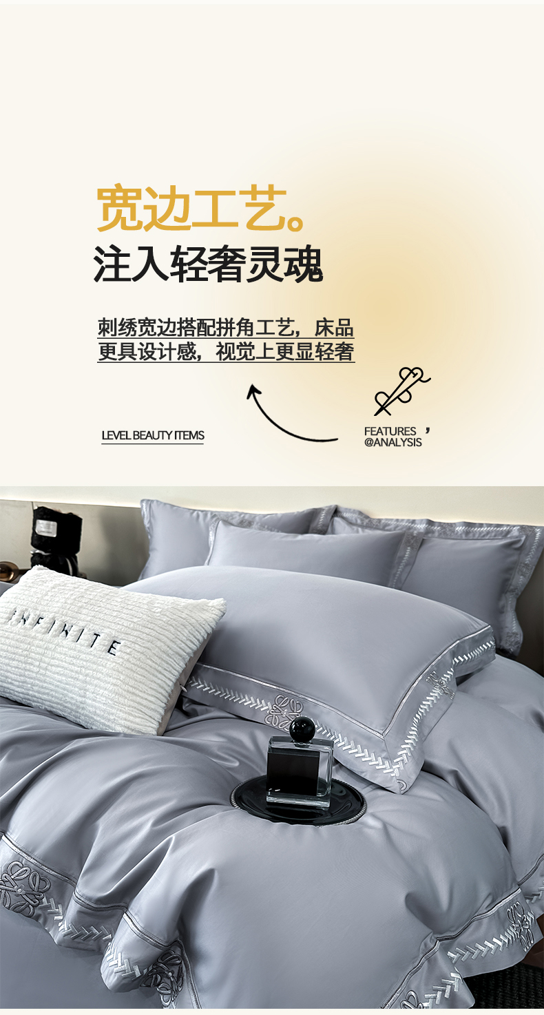 商品名称:(总)置顶家纺 2026春夏新款多伦多系列亲肤刺绣拼角四件套