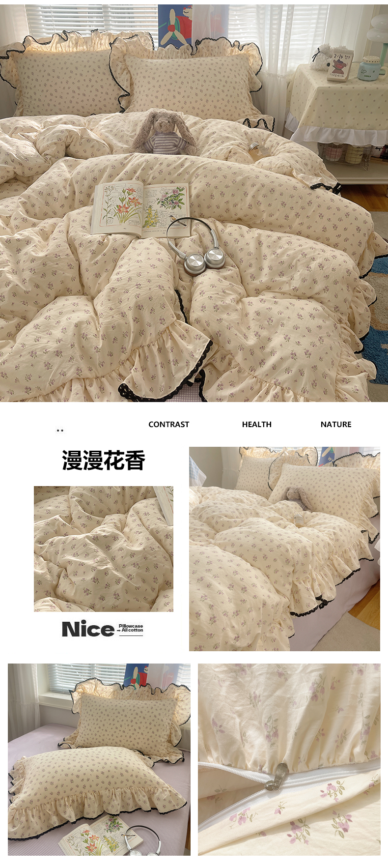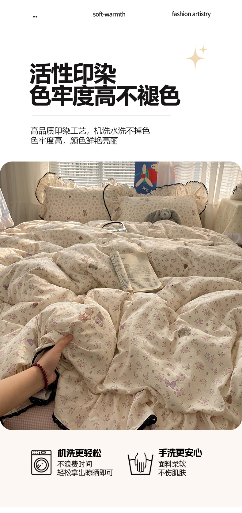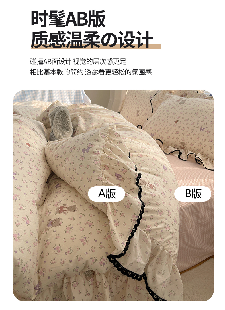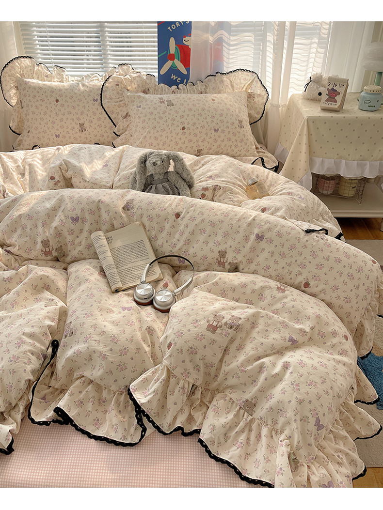 当前位置: 91家纺网 > 商品网购 > 床品套件 > 四件套 > 水洗棉四件套 > 三朵家纺 2026新款云柔水洗棉大花边A类韩版四件套 花花熊仔