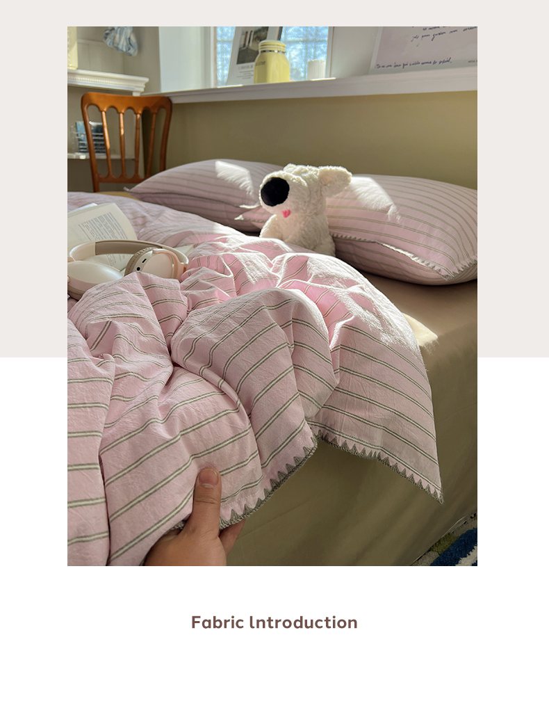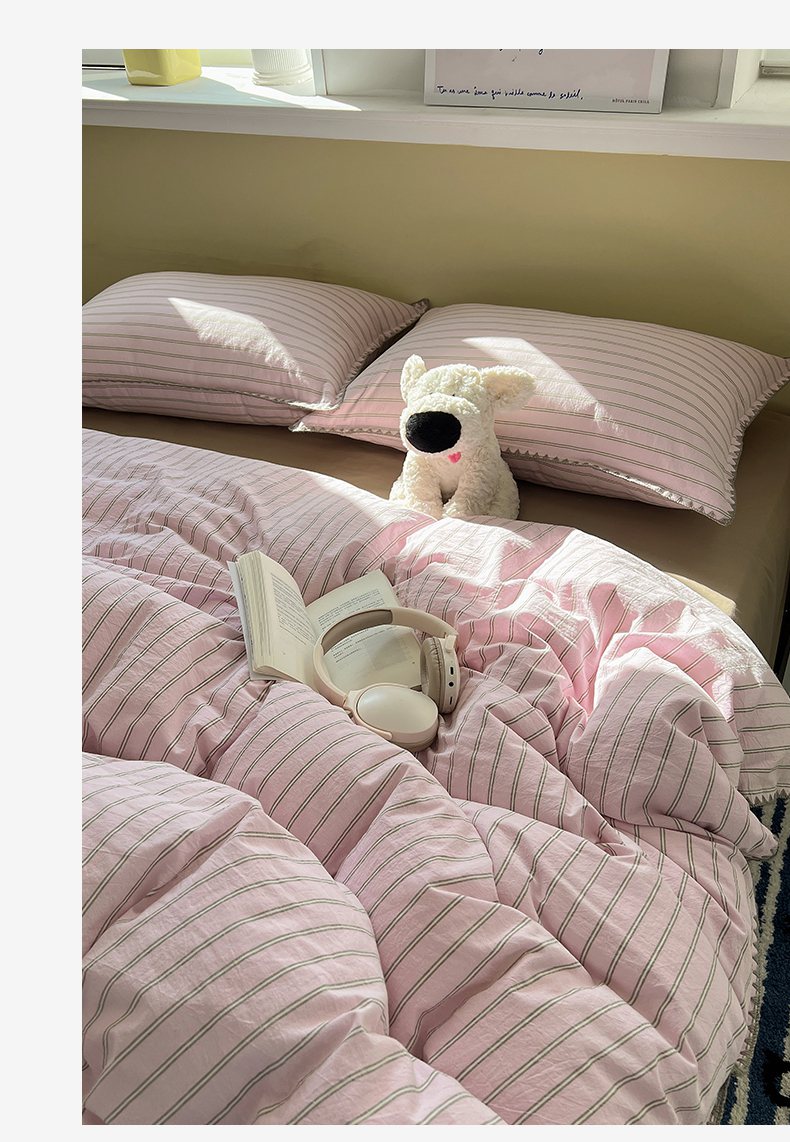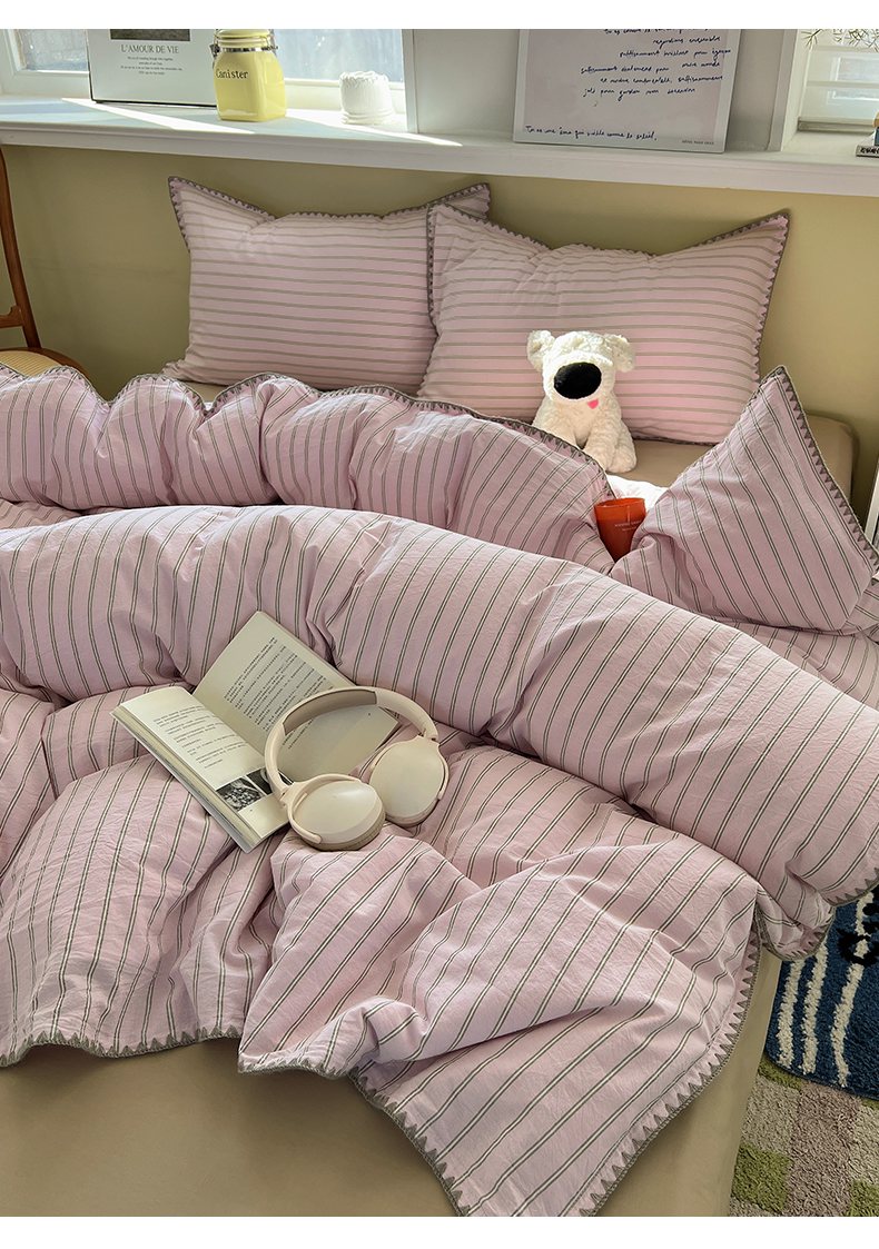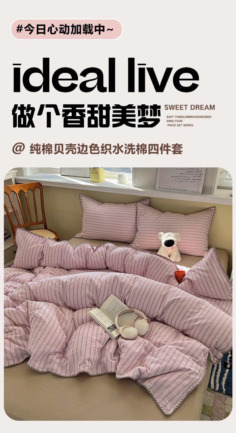 当前位置: 91家纺网 > 商品网购 > 床品套件 > 四件套 > 全棉普通四件套 > XIWEN-希文家纺 2026新款40支全棉色织水洗棉贝壳边四件套 双条-粉
