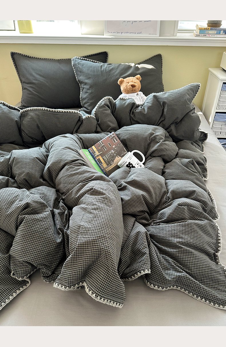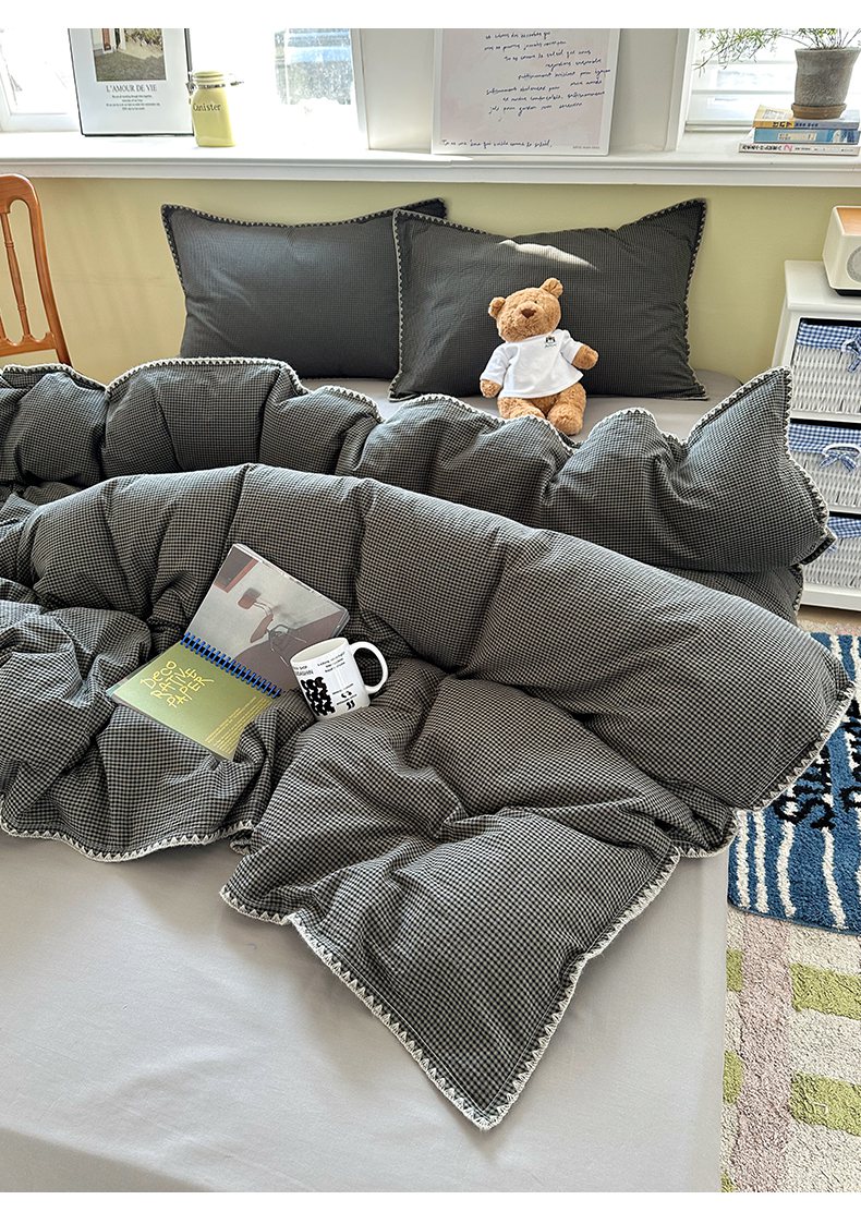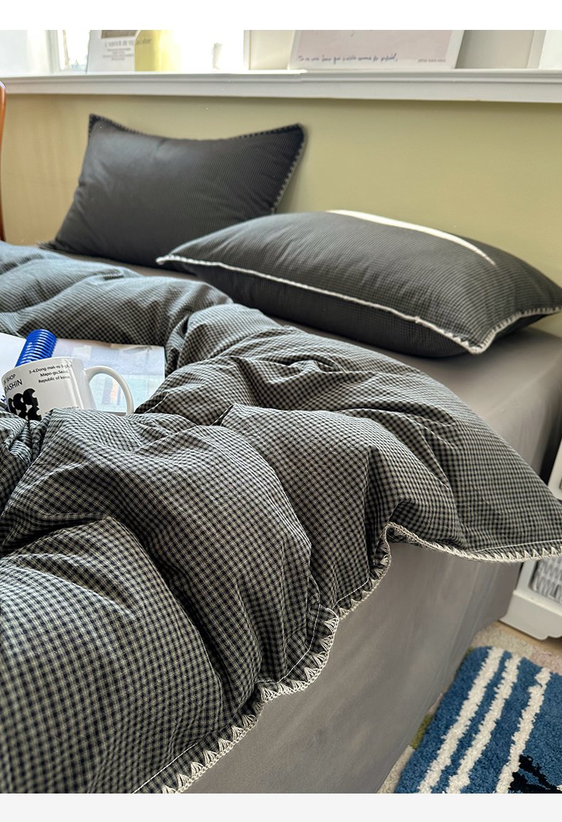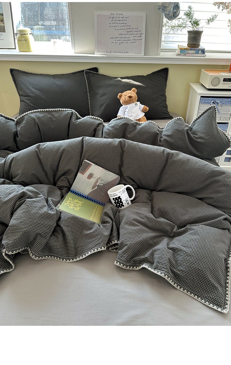 当前位置: 91家纺网 > 商品网购 > 床品套件 > 四件套 > 全棉普通四件套 > XIWEN-希文家纺 2026新款40支全棉色织水洗棉贝壳边四件套 余音-黑