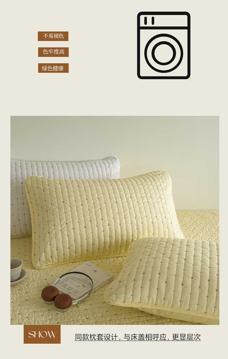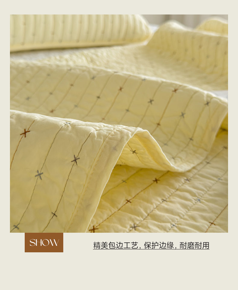 商品名称:沐纯家居 2026新款60支全棉纯棉米粒绣纯色床盖三件套 黄色