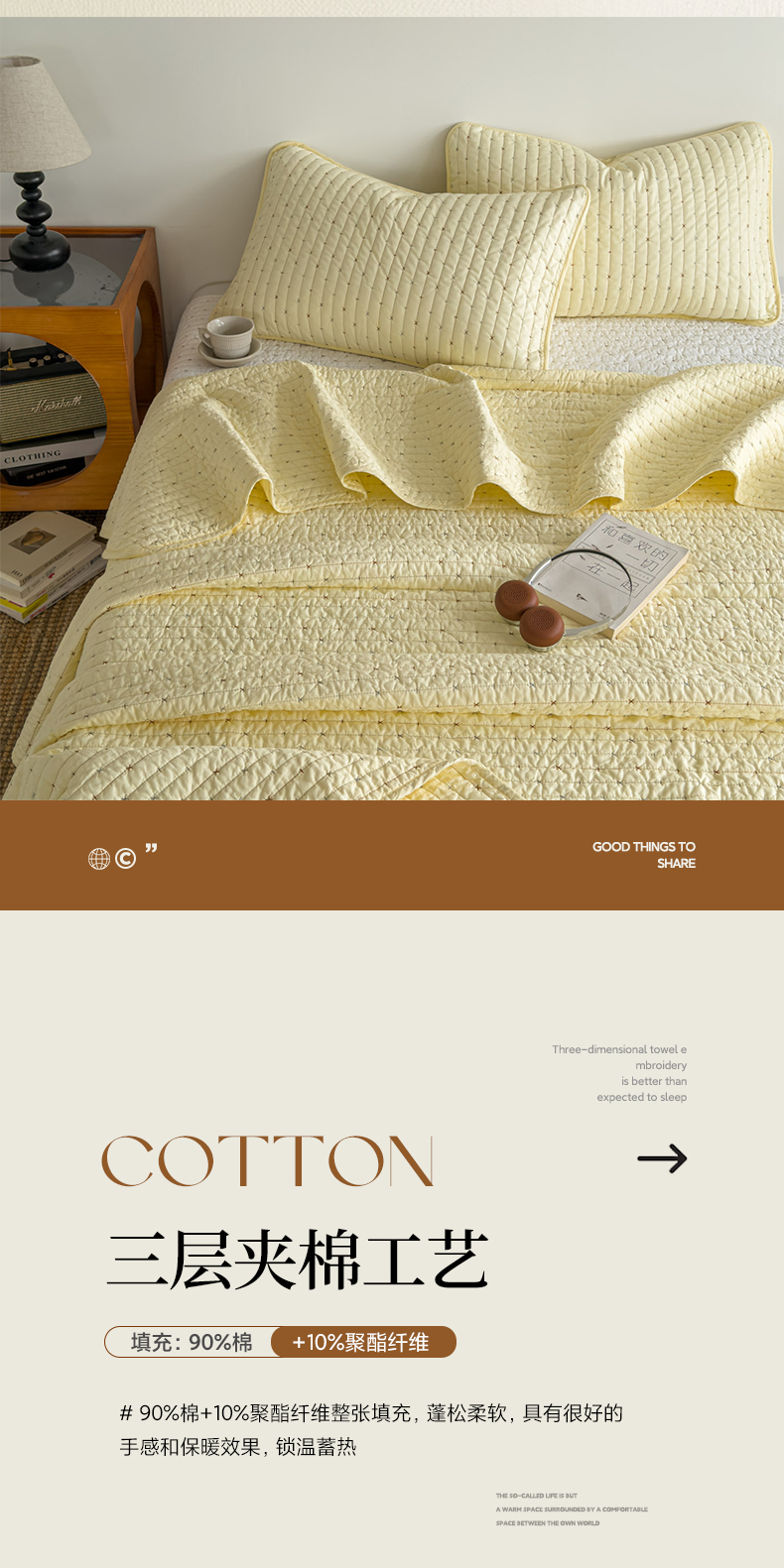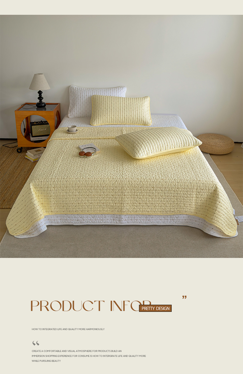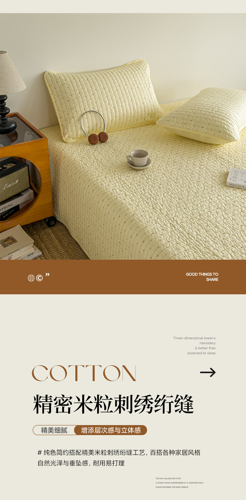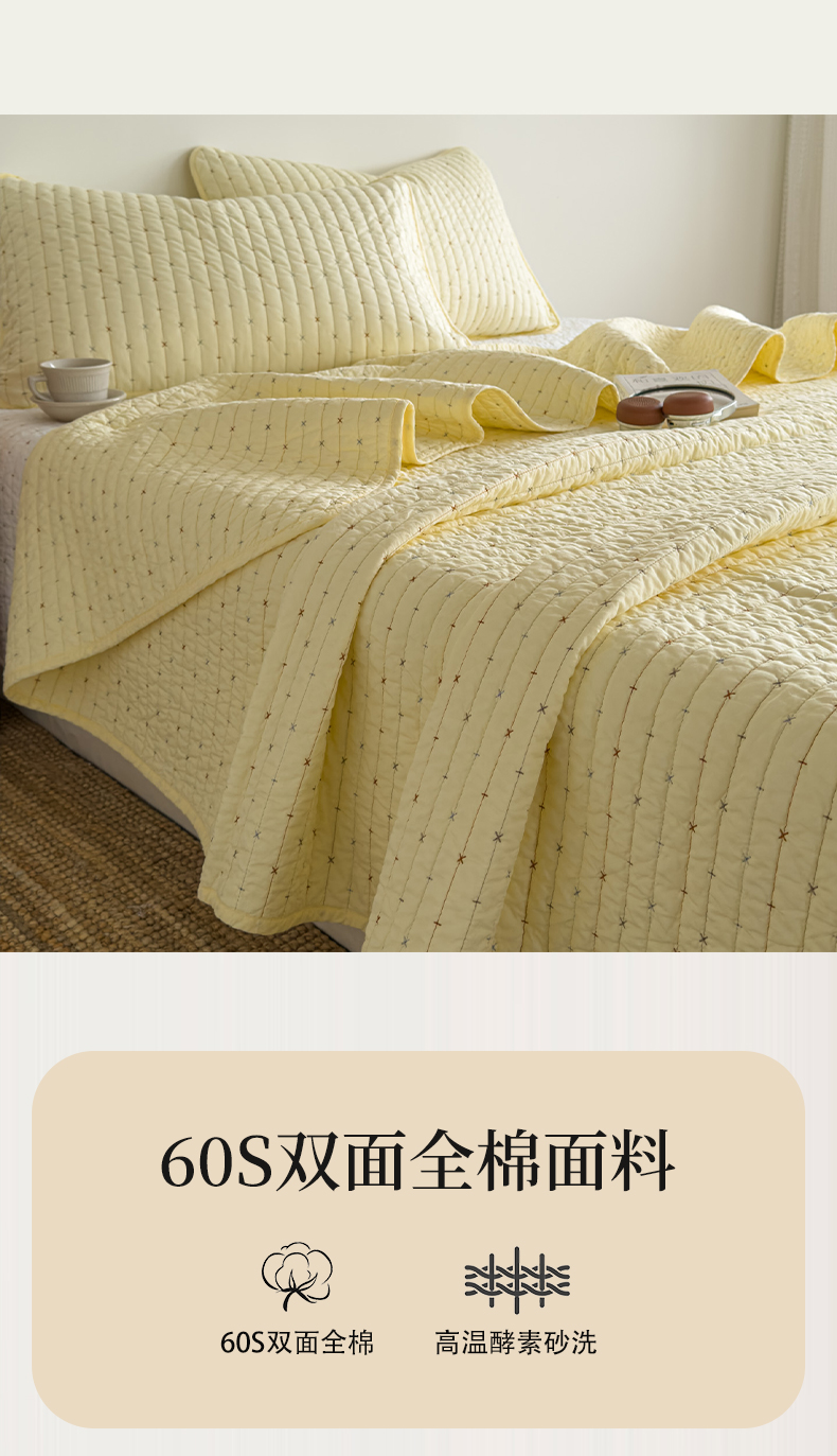 沐纯家居 2026新款60支全棉纯棉米粒绣纯色床盖三件套 黄色