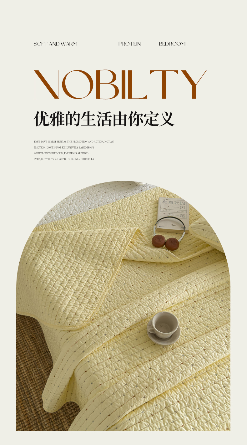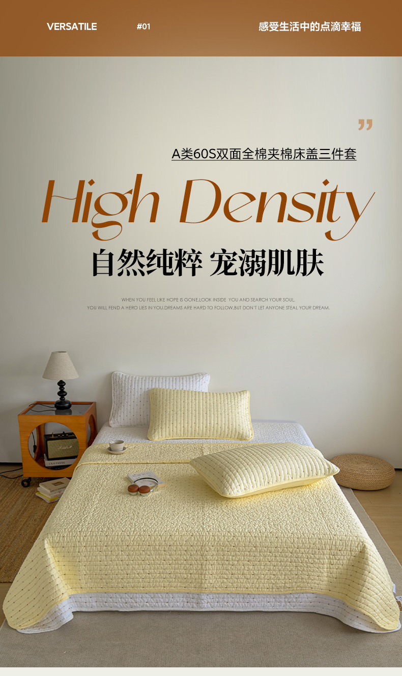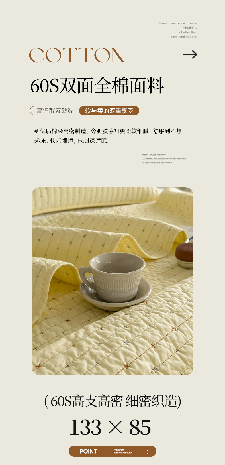 沐纯家居 2026新款60支全棉纯棉米粒绣纯色床盖三件套 黄色
