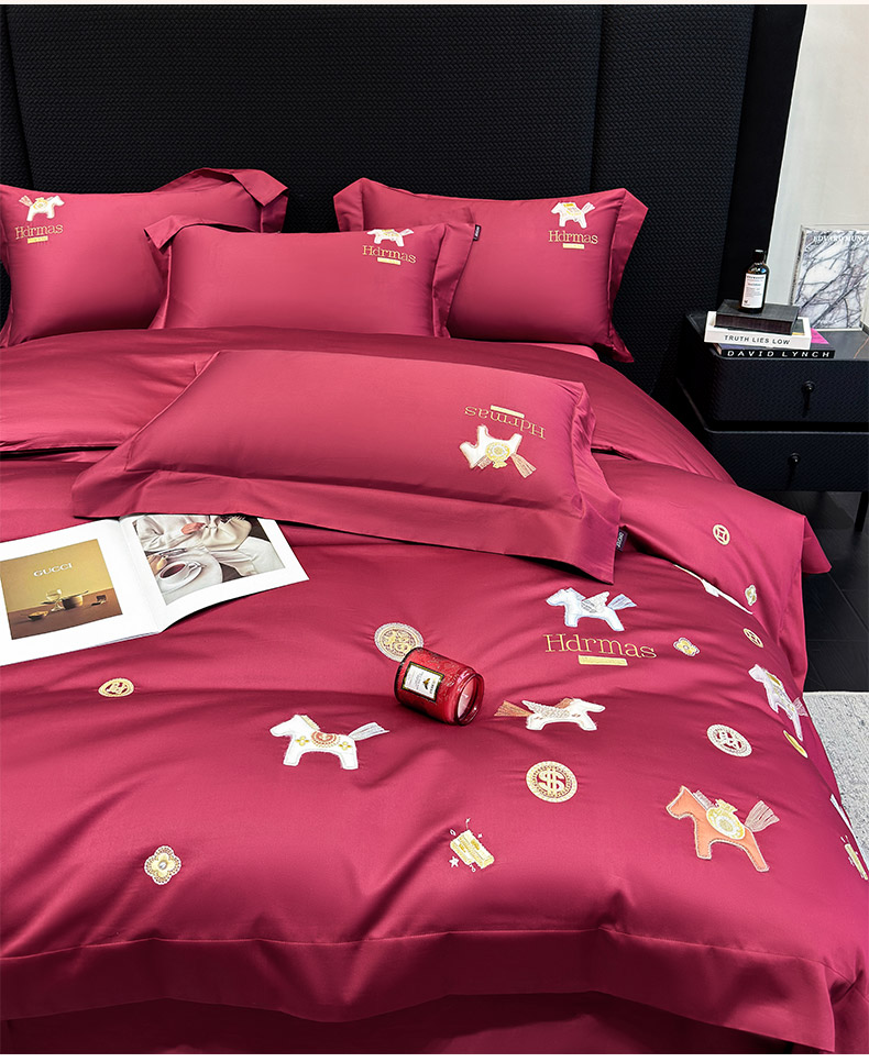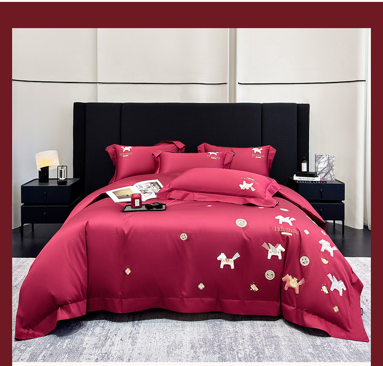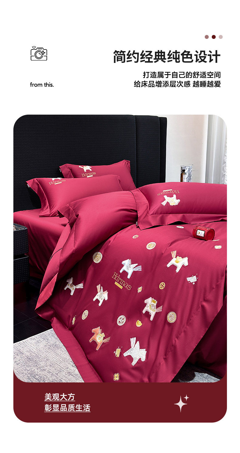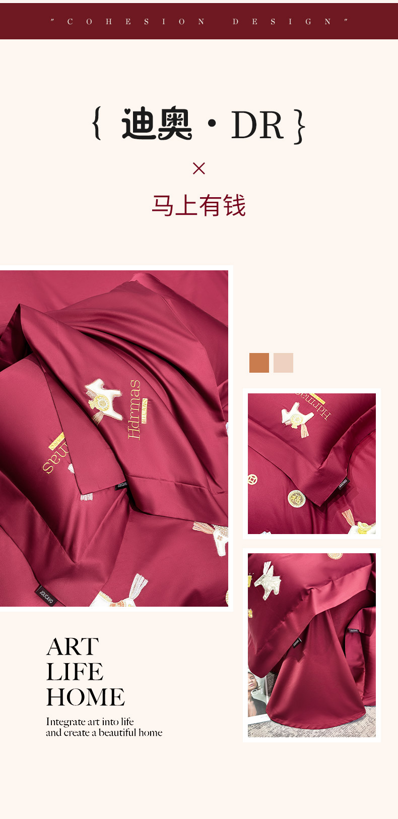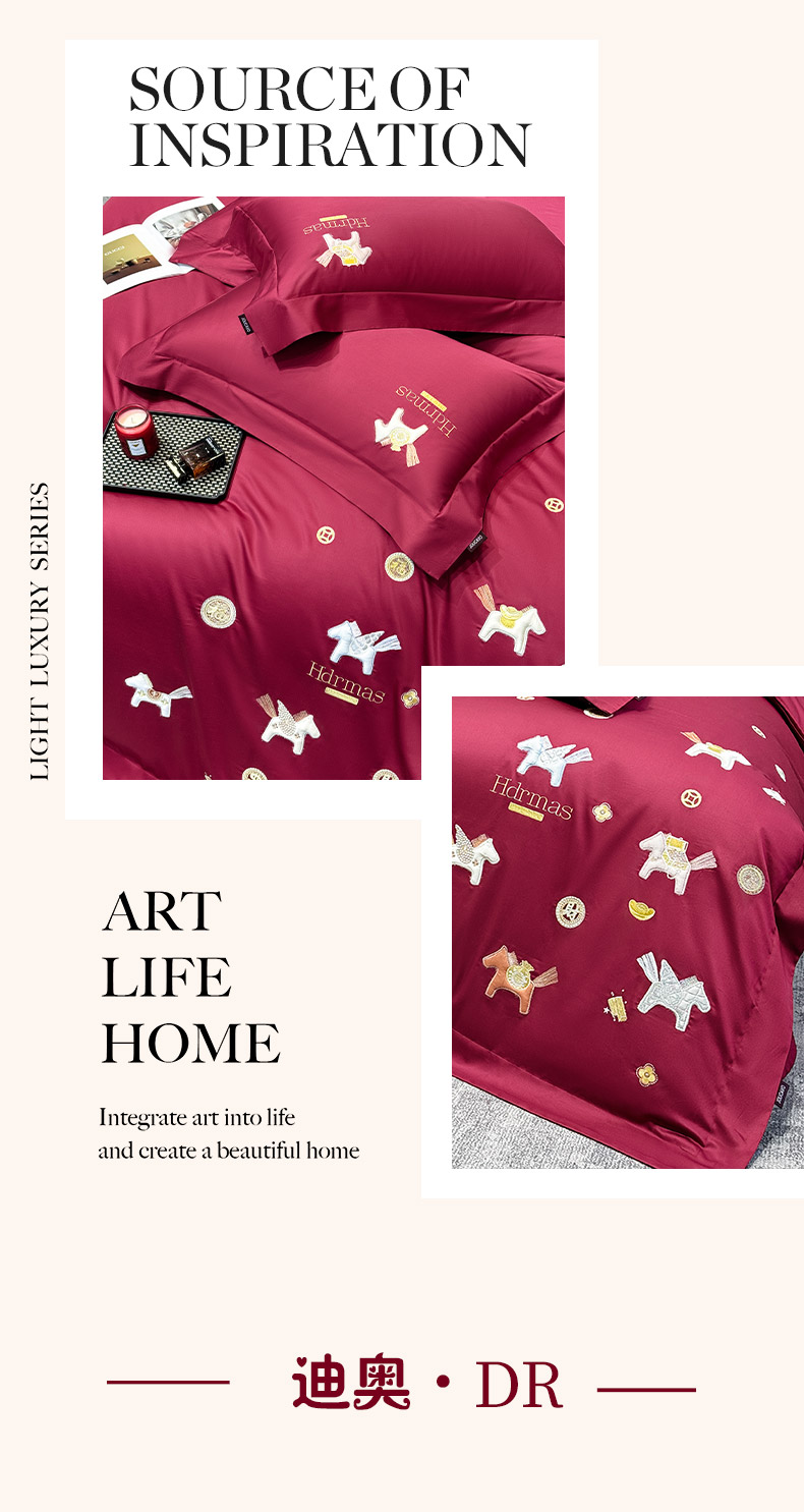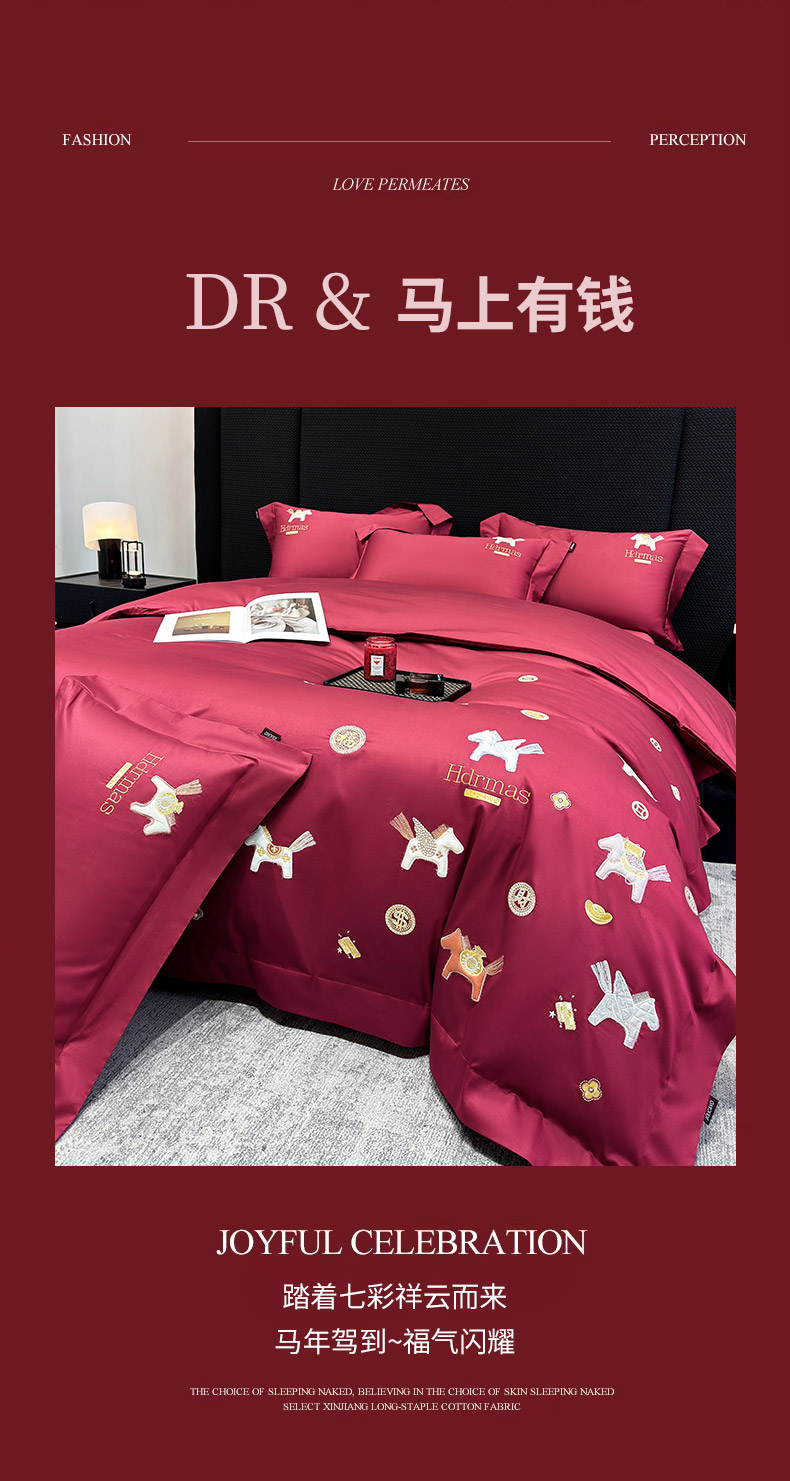 2026【迪奥】马年50S双股A类长绒棉纯棉四件套100全棉新年刺绣被套床单床笠床上用品 马上有钱-红