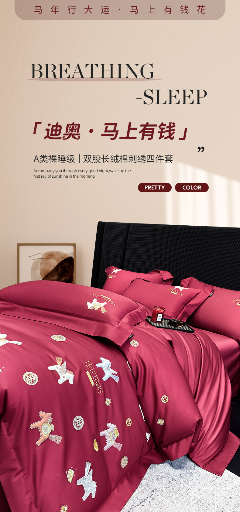 当前位置: 91家纺网 > 商品网购 > 床品套件 > 四件套 > 长绒棉四件套 > (总) 2026新款【迪奥】马年50S双股A类长绒棉纯棉四件套100全棉新年刺绣被套床单
