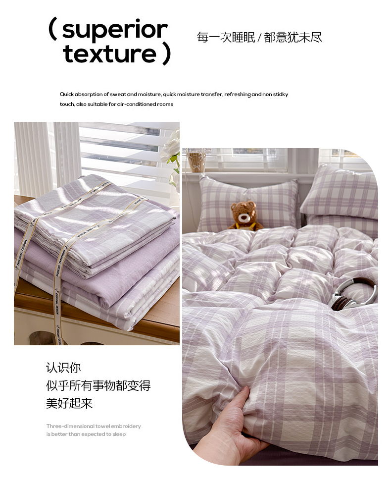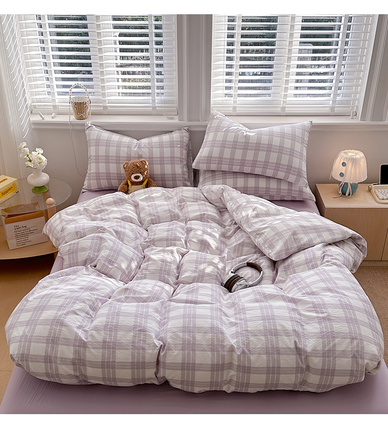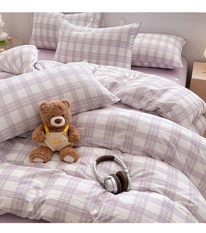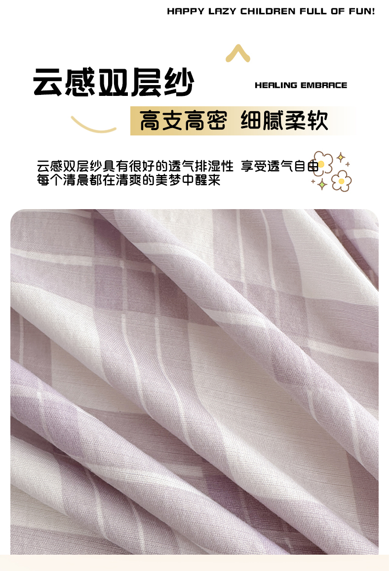 商品名称:多品家纺 2026新款奶呼呼超柔云感双层纱系列单被套 半岛紫格