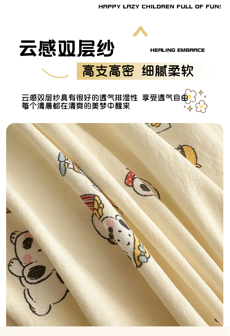 商品名称:多品家纺 2026新款奶呼呼超柔云感双层纱系列单被套 淘气园