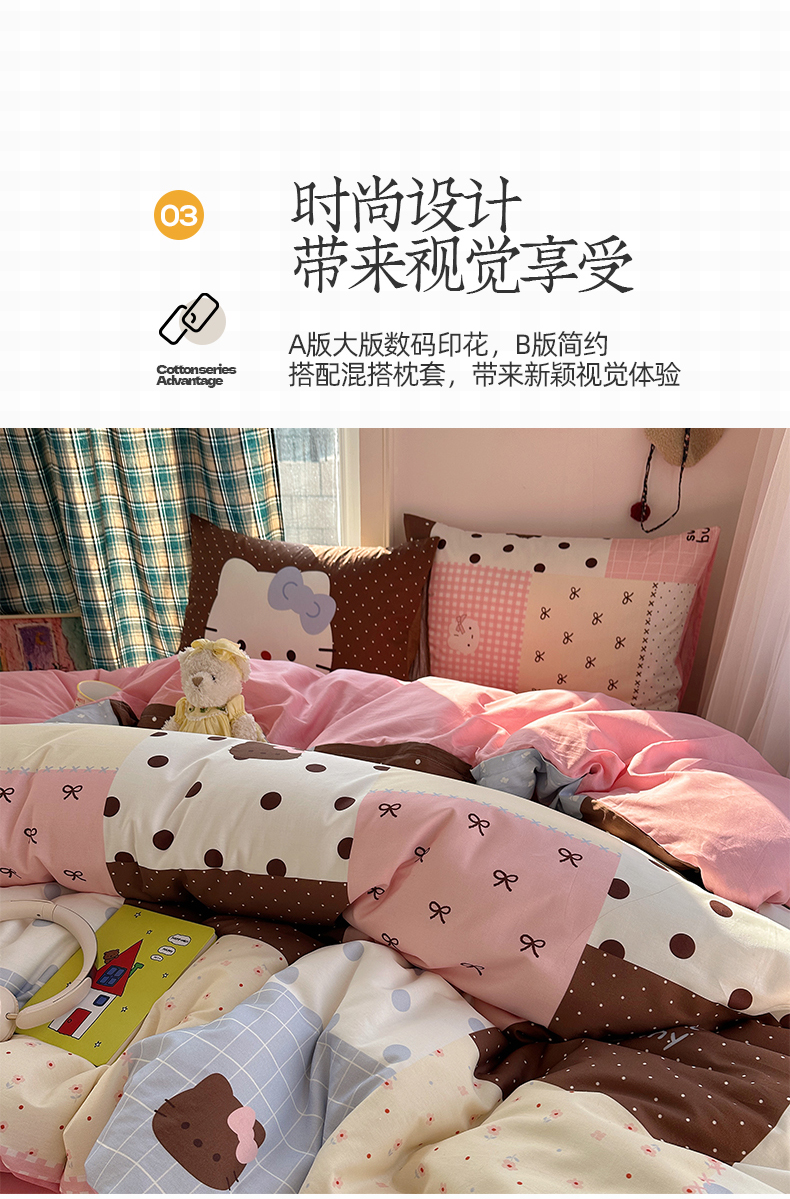 商品名称:桃子家居 2026新款纯棉混搭大版数码印花枕套小清新猫咪可爱系列四件套 棉混搭-奶糖可可猫