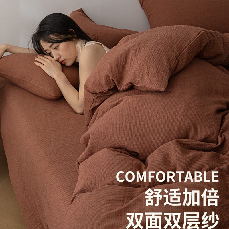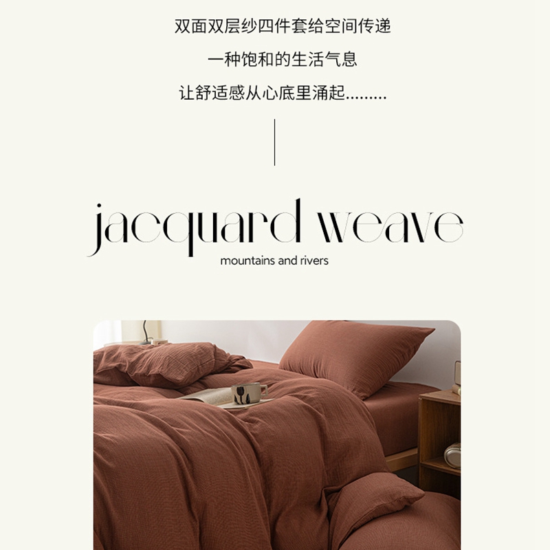 当前位置: 91家纺网 > 商品网购 > 床品套件 > 四件套 > 全棉普通四件套 > (总)双层纱家居 2025新款AA版拉链款全棉色织提花双层纱四件套-弥山