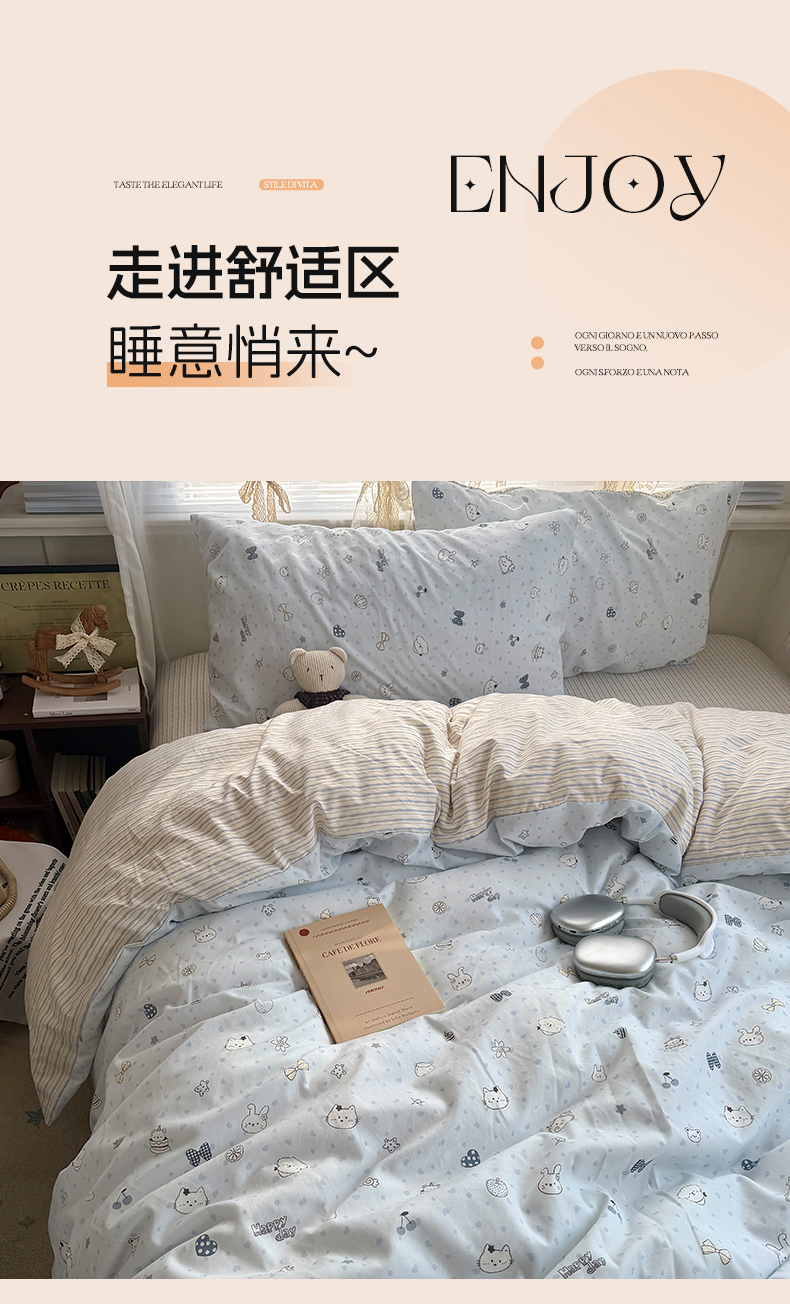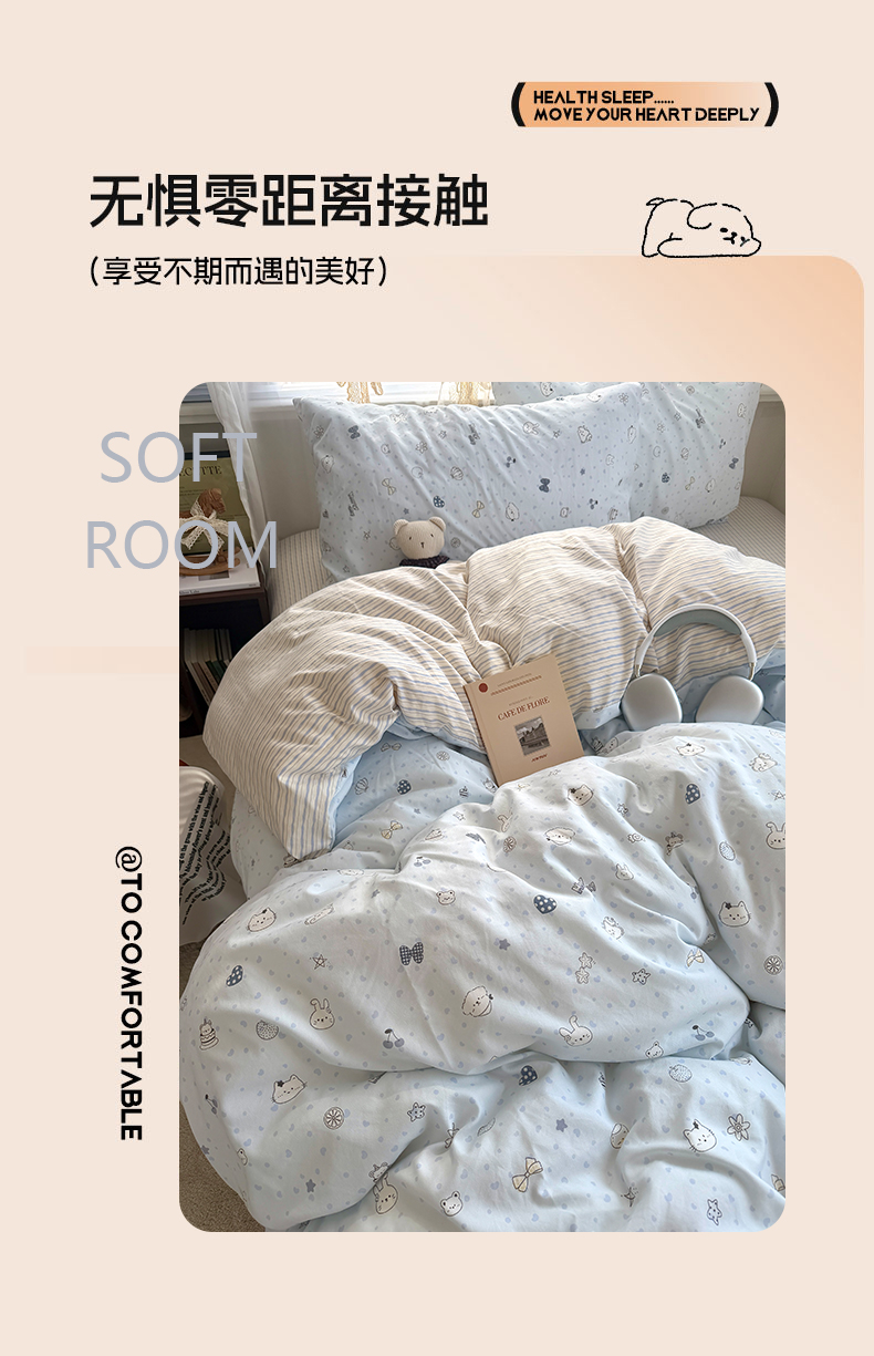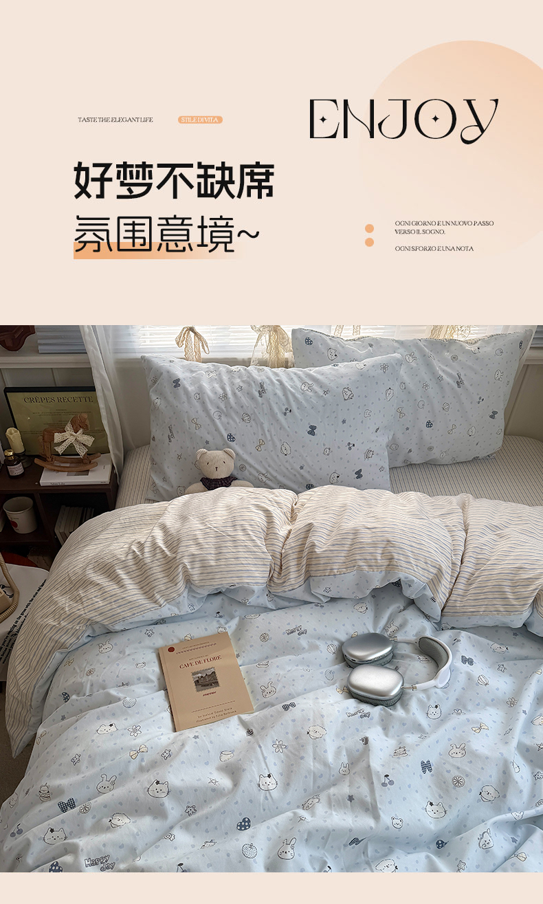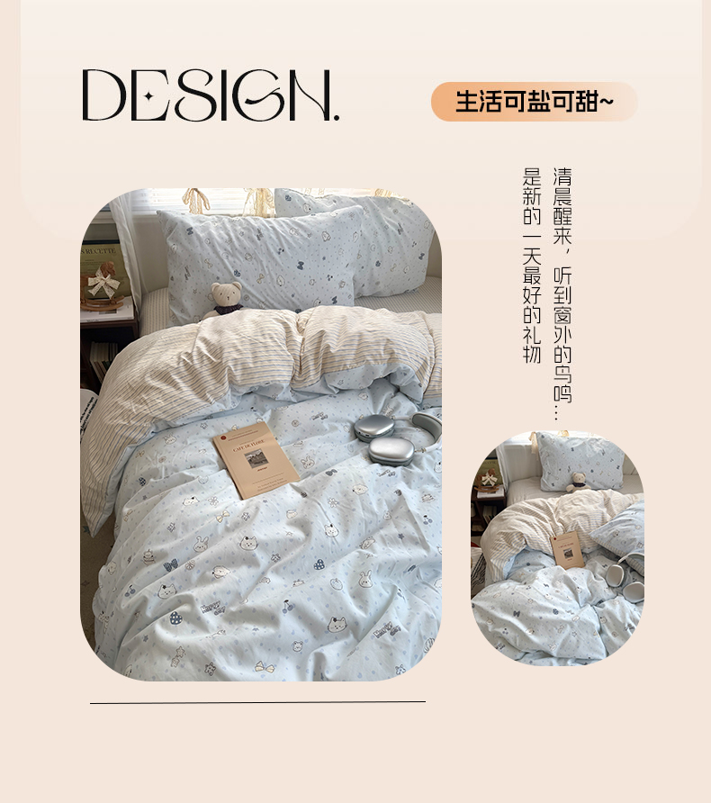 当前位置: 91家纺网 > 商品网购 > 床品套件 > 四件套 > 双层纱四件套 > 原素 2026新款小清新水洗双层纱四件套 爱心兔团