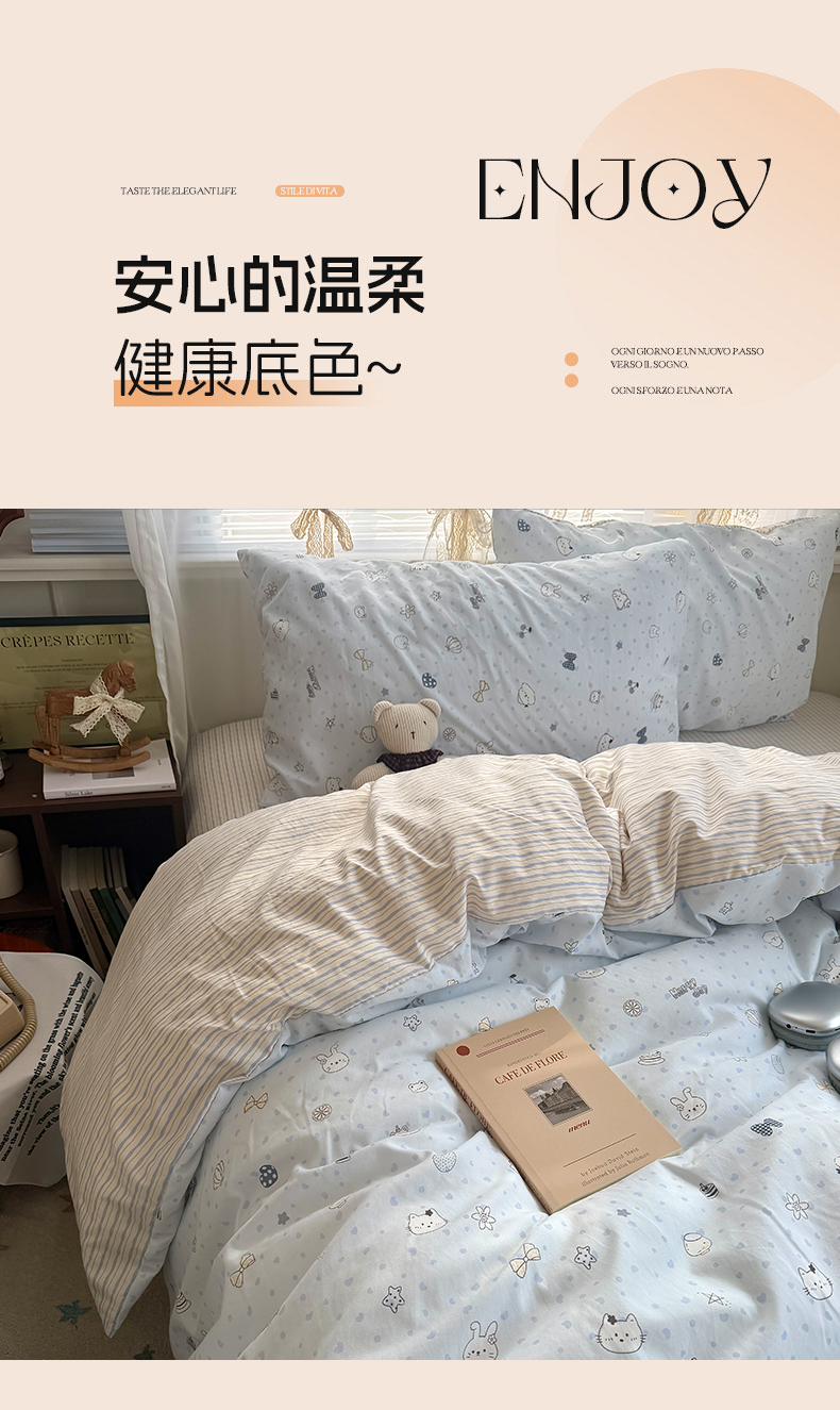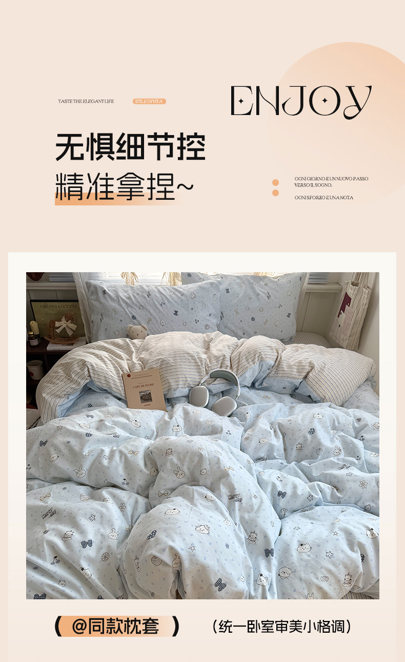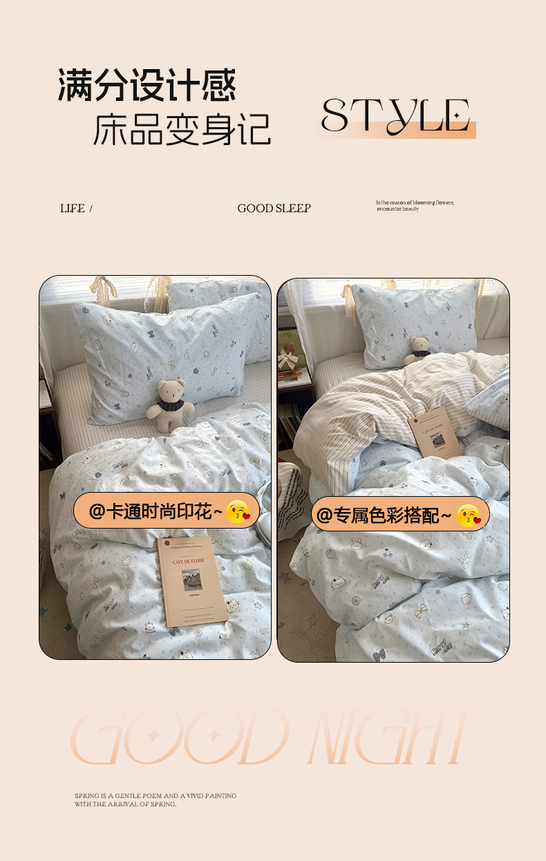 当前位置: 91家纺网 > 商品网购 > 床品套件 > 四件套 > 双层纱四件套 > 原素 2026新款小清新水洗双层纱四件套 爱心兔团