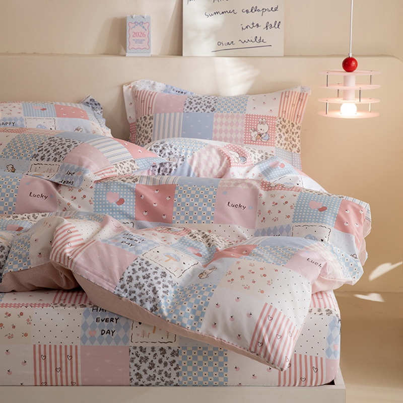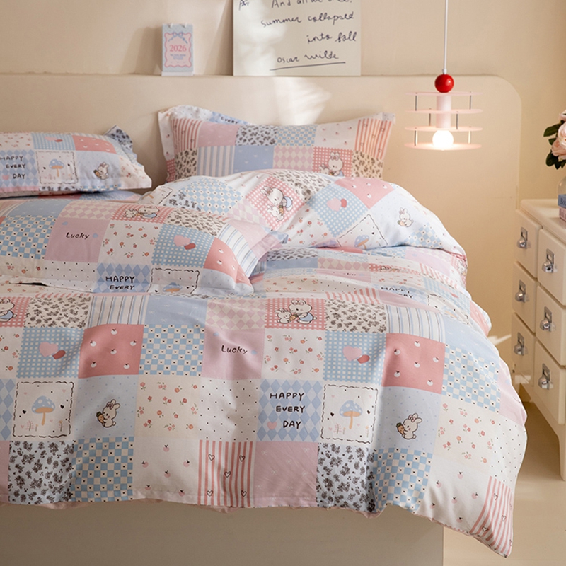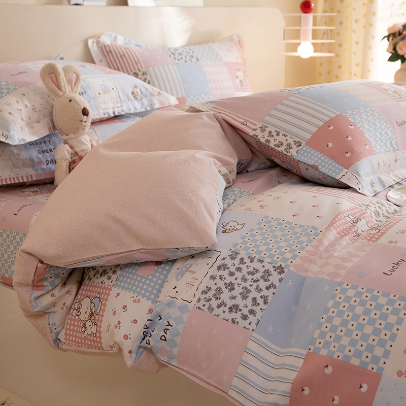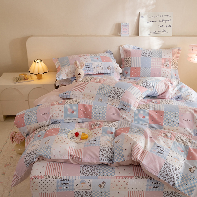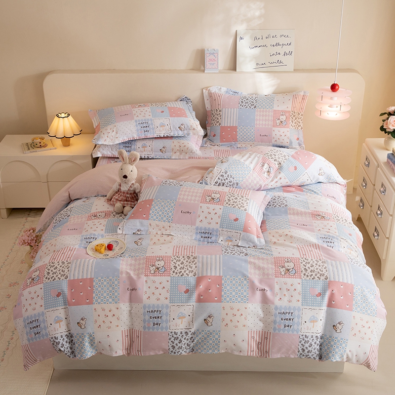 八十八家纺 2025新款全棉12868床笠款四件套 花点小兔