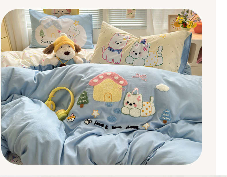 当前位置: 91家纺网 > 商品网购 > 床品套件 > 四件套 > 其它四件套 > 一霖家纺 2026新款云朵棉毛巾绣小清新猫咪系列四件套 汪汪碎碎念