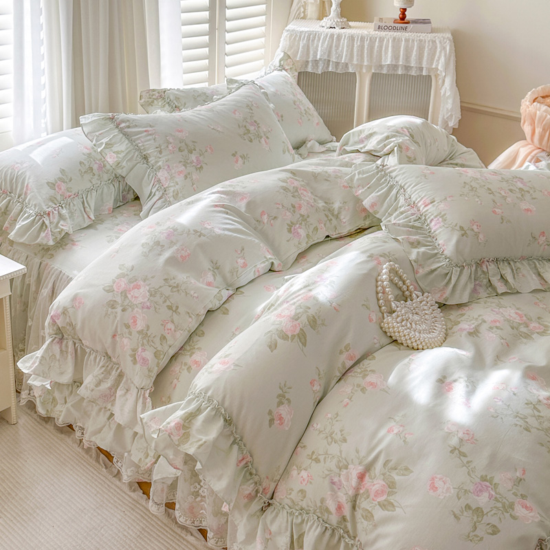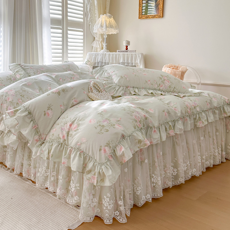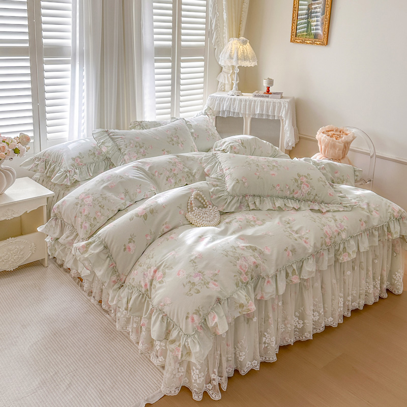瑞宝 2026新款全棉印花床裙三件套床裙被套单品系列 春田绿