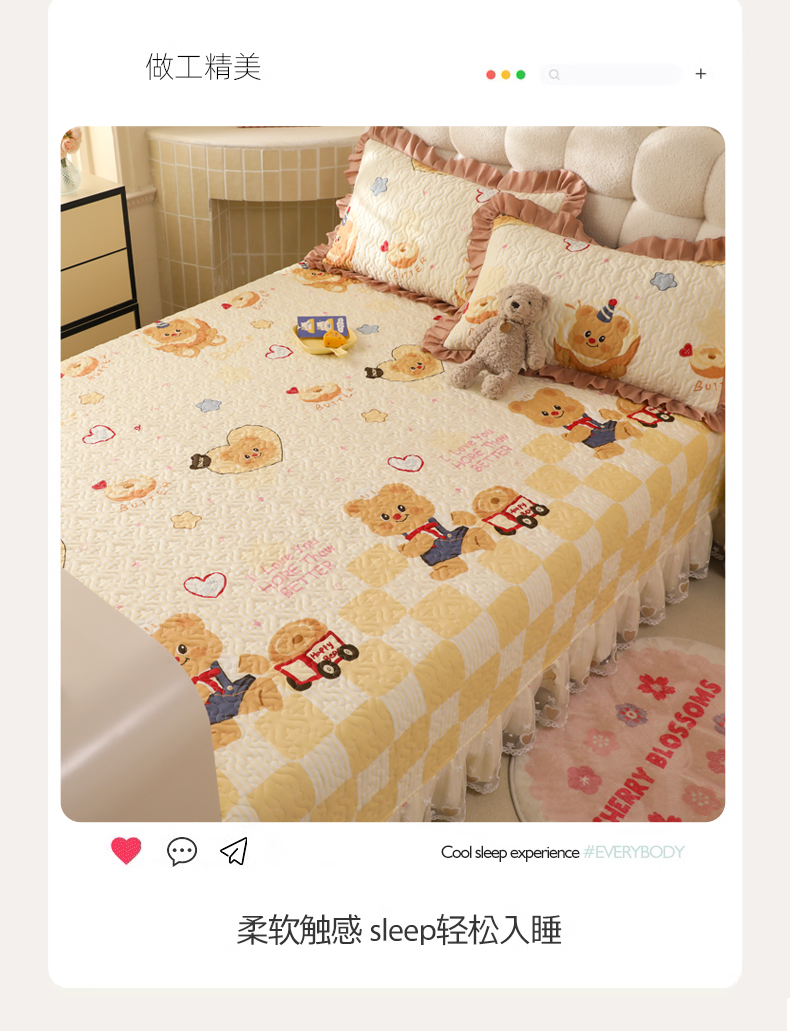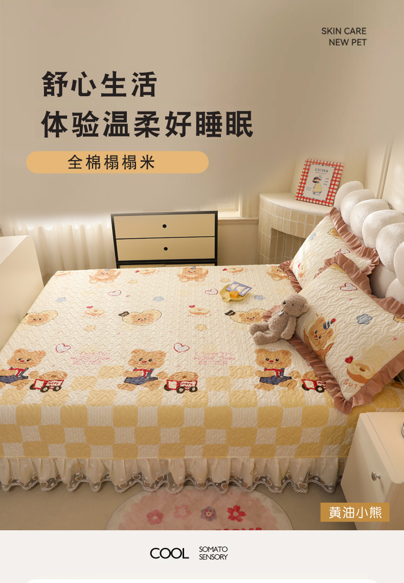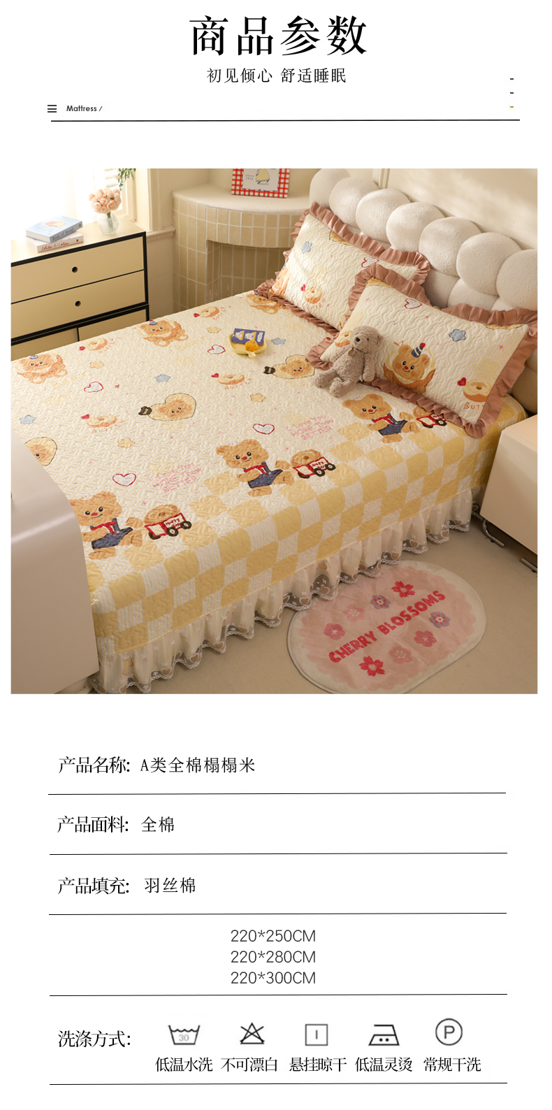 当前位置: 91家纺网 > 商品网购 > 床垫/床褥 > 榻榻米床垫 > 美达家纺 2026新款A类全棉夹棉蕾丝花边榻榻米床垫大炕盖 黄油小熊